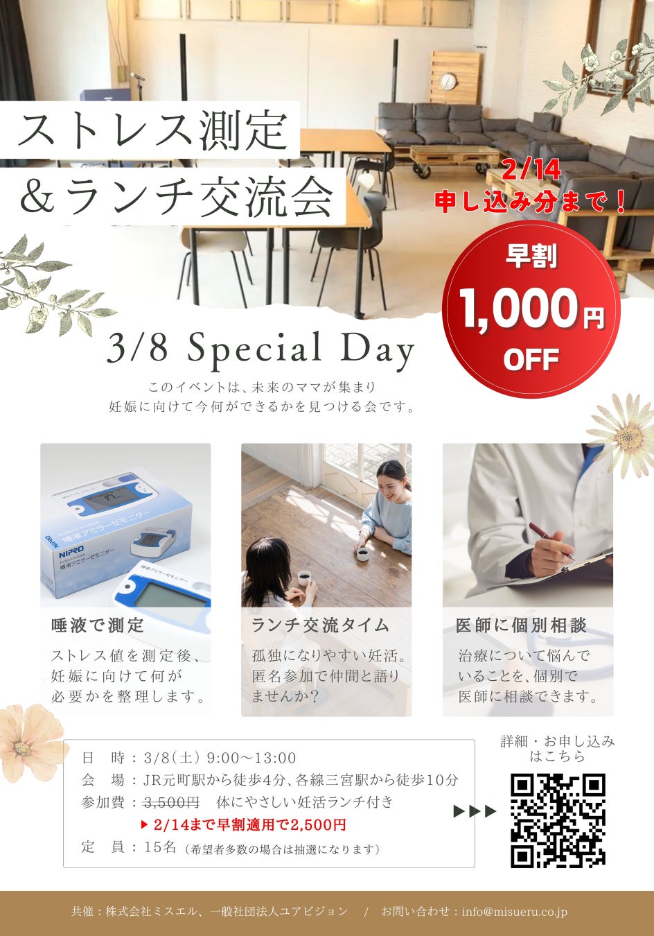 未来のママが集う、ランチ交流会を開催!妊活相談とストレス測定付きの国際女性デーイベント