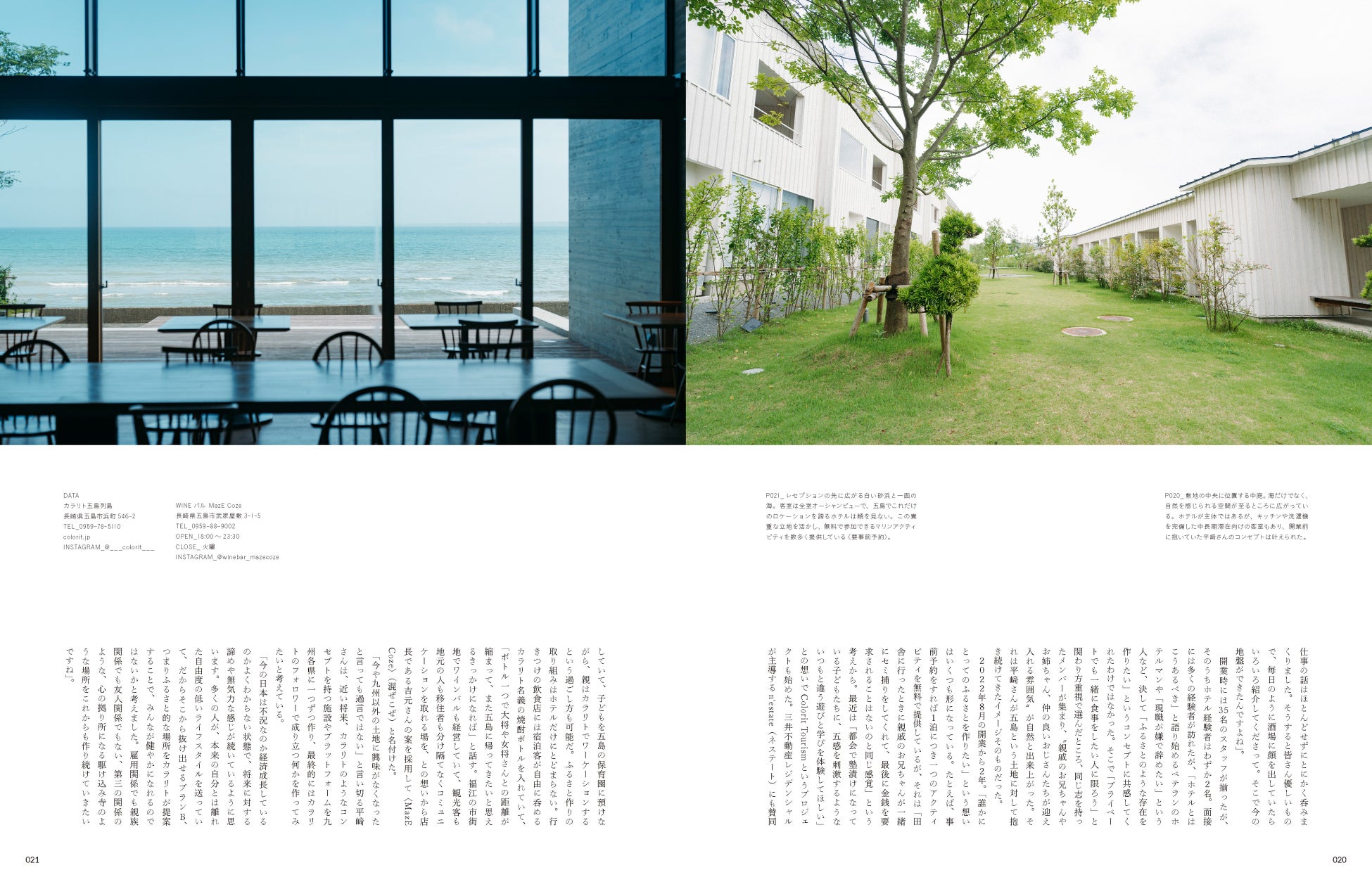 誌面内容は五島列島で暮らし、仕事をする人たち30組ほどの人たちを取材し、なぜ島でその生業をするのかを綴っています。それは同時に観光名所や食べる、買う、遊ぶ、泊まるといった地域情報とは違う、その人たちが作るもの(加工品、ものづくり、料理)と手がけるもの(宿、喫茶店)といった地域の魅力ある情報を伝える内容にもなっています。地域の魅力はそこに住む人が作るものです。全国の産地と呼ばれるところも誰か一人の作り手が始めたことでその土地の文化になっています。