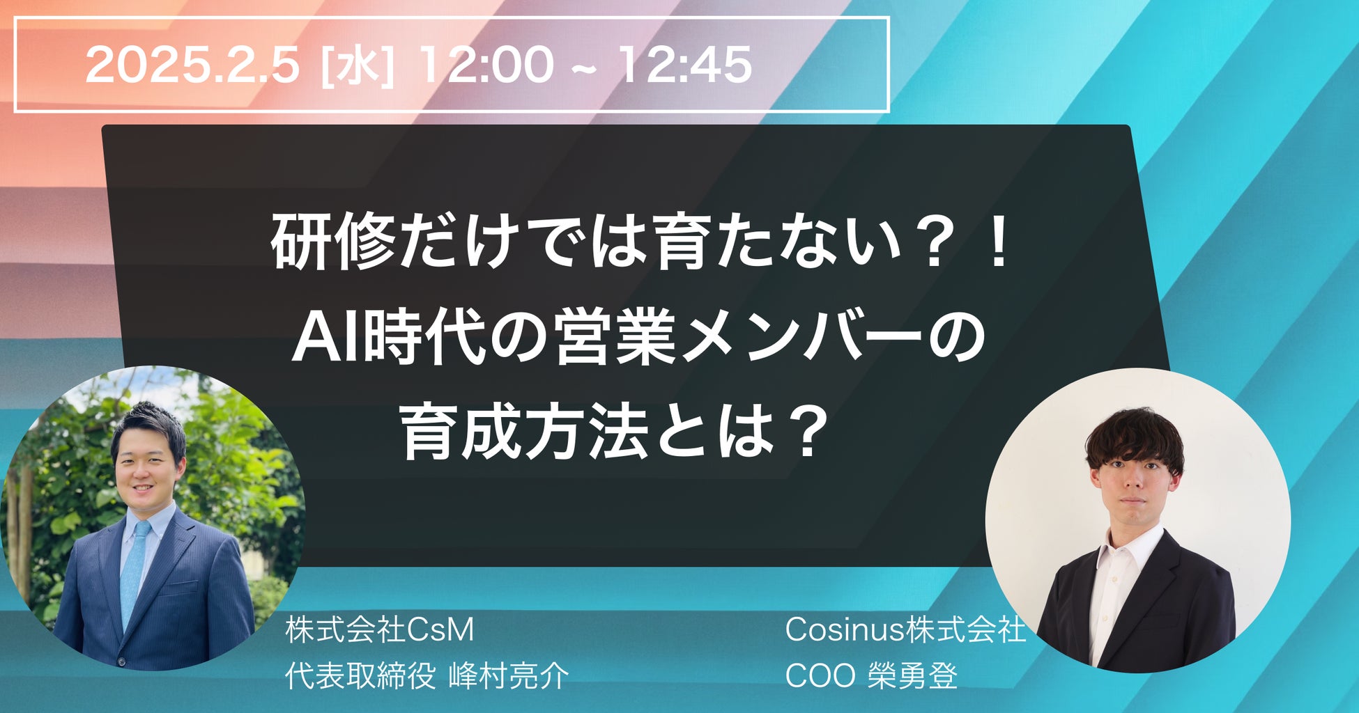 【2/5(水)開催!】Cosinus、CsM共催ウェビナーを開催:研修だけでは育たない?!AI時代に勝てる営業メンバーの育成方法とは?