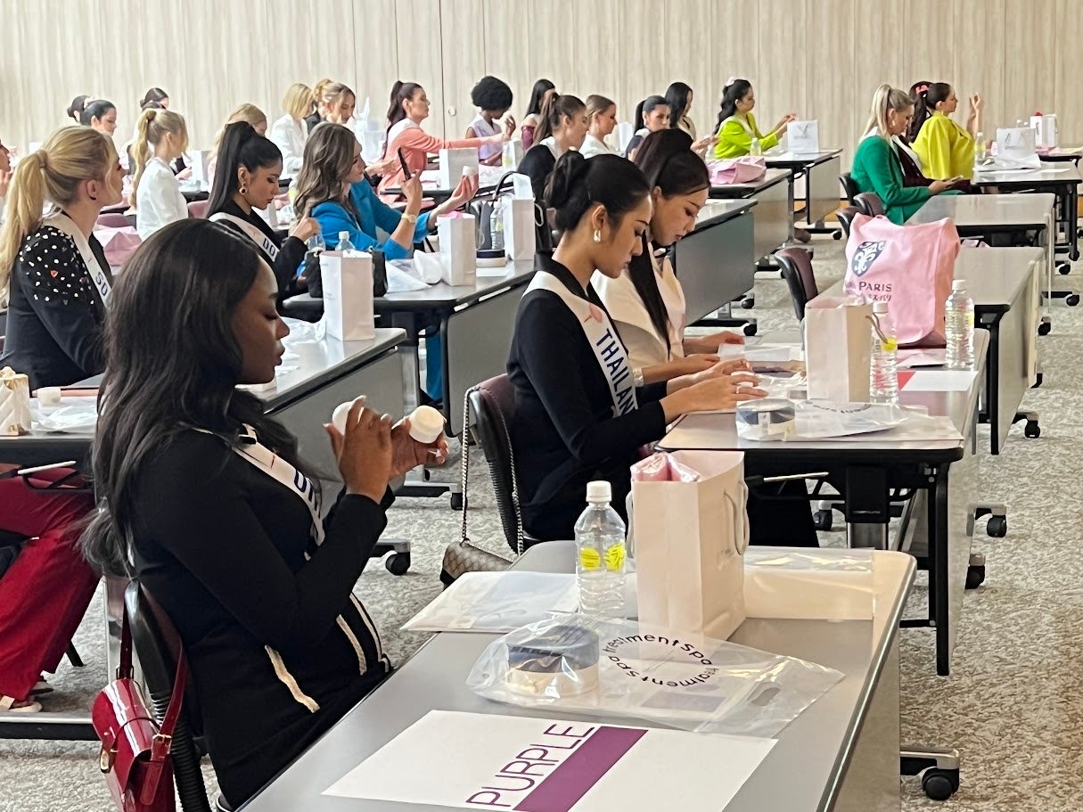 世界大会へ出場されるミス全員へ向けて、『Dr.AIRAG』のプレゼンテーションを行いました。当グループの技術を活用した『Dr.AIRAG』の成り立ちや原料(発酵馬乳エクソソーム「AiREV®」)、開発の背景、製品ラインナップについてご紹介いたしました。プレゼンテーション後には、多くのミスの方々から製品への関心を寄せていただきました。