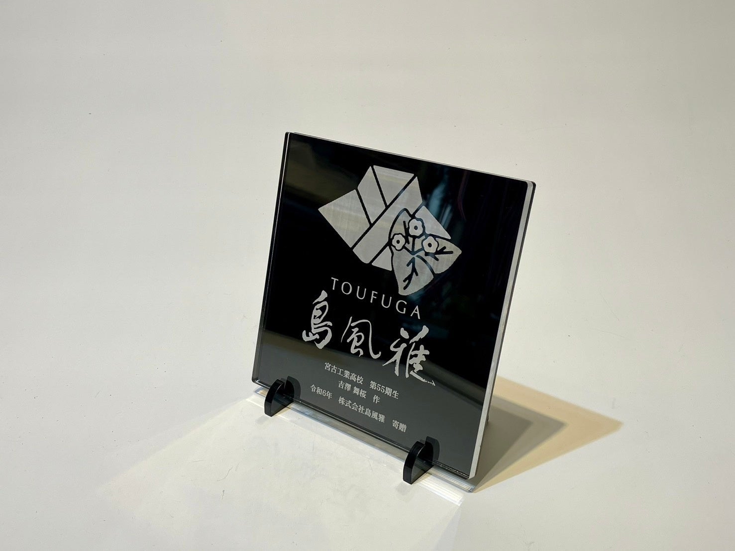 「島風雅」のロゴは、宮古工業高校生活情報科1年の吉澤舞桜さんがデザインを担当。着物の美しいラインと宮古島の花「ブーゲンビリア」を組み合わせたデザインは、ブランドの理念を象徴しています。11月19日には、代表の田熊が吉澤さんへロゴ入りプレートを贈呈し、その功績を称えました。このロゴは、地元との連携を深め、宮古島発ブランドとしての価値を高める重要なシンボルとなります。