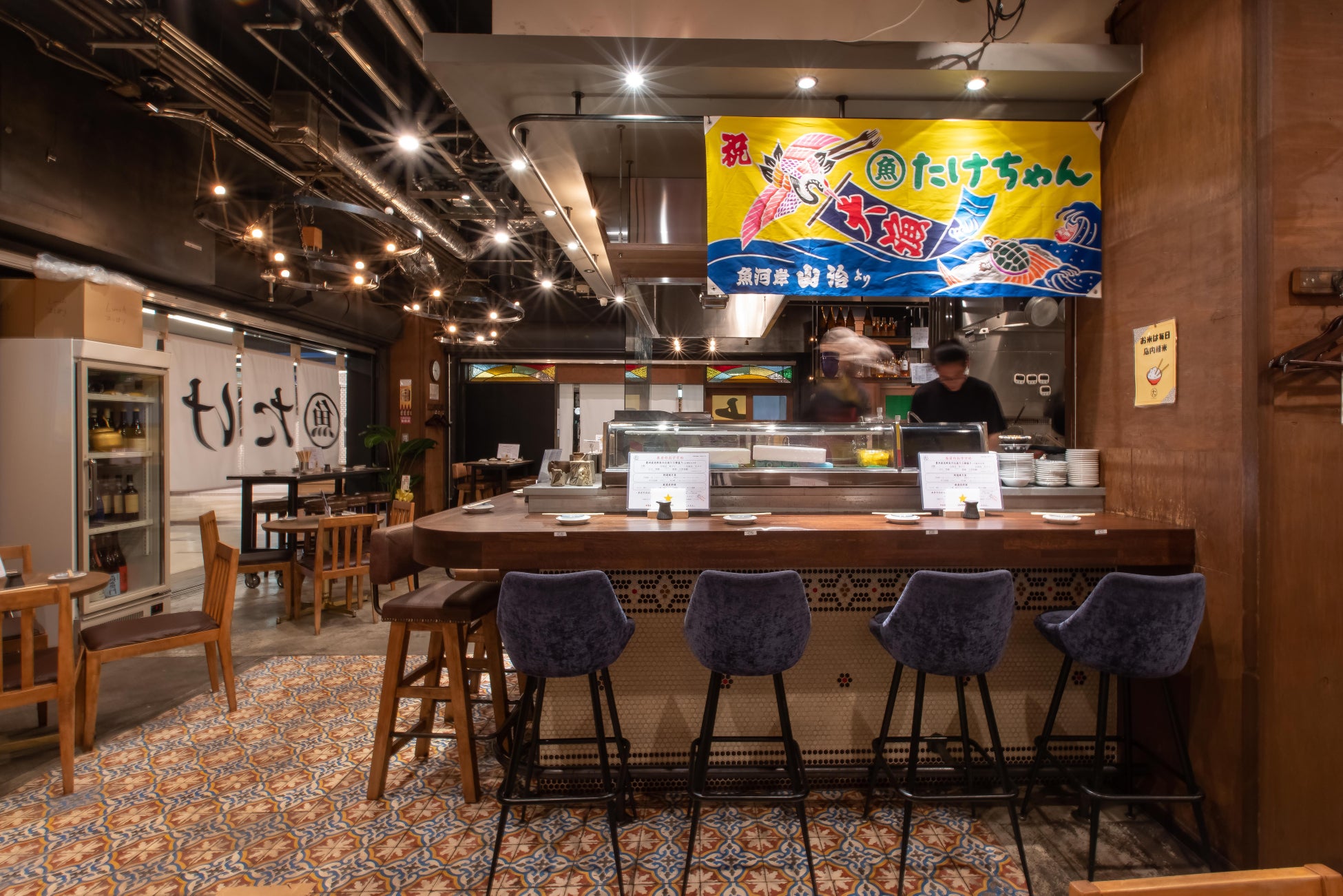 青山一丁目ツインビルB1にオープンした「魚たけちゃん」は、昼は焼き魚定食、夜は日本酒と一品料理が楽しめる大衆酒場です。店内で精米したてのご飯との相性も抜群。お通しなし、税込み価格で気軽に利用でき、一人でもグループでも楽しめます。落ち着いたダイニングエリアとスタンディングエリアがあり、様々なシーンに対応。近隣住民の皆様にとって「ちょうどいい場所」を目指しています。