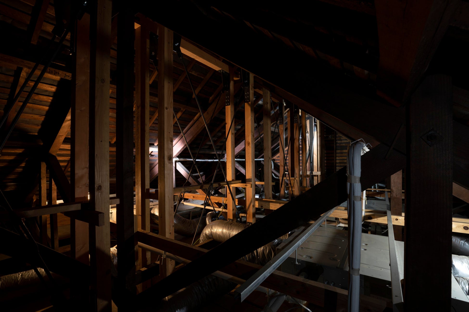 大地震が発生しても倒壊しない程度の耐震強度を確保するため、本堂の補強を実施しました。本堂は建築基準法施行(昭和25年・1950年)以前の建物であり、現行の建築基準法や耐震改修促進法に適合させることはできないものの、文化遺産を保護する観点から任意で耐震改修を行いました。主な補強措置としては、小屋組の補強、耐力壁の追加、基礎の補強を実施しています。