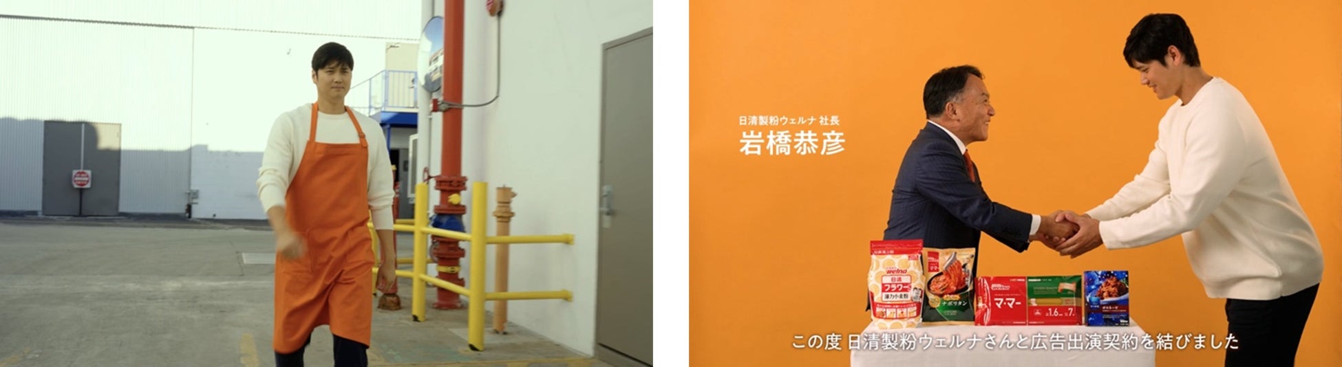 大谷翔平選手、新ユニフォームは“オレンジエプロン”?!日清製粉ウェルナ 大谷翔平選手のエプロン姿を初公開