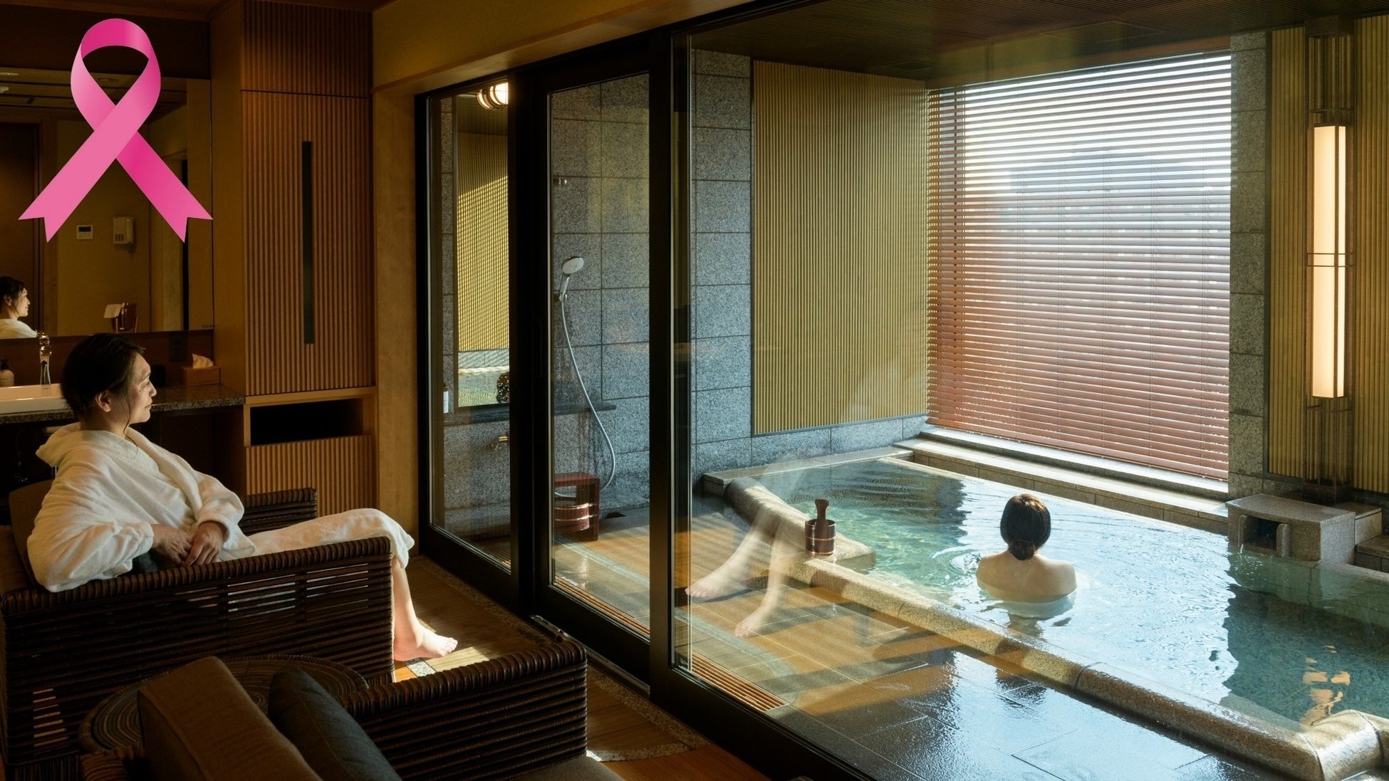 その第一弾として、乳がんを乗り越えたサバイバーの方とそのご家族を対象に、「和の設計匠」松葉啓デザインによる100%天然温泉の「完全個室型和温泉」を50%OFFでご提供するキャンペーンを実施いたします。