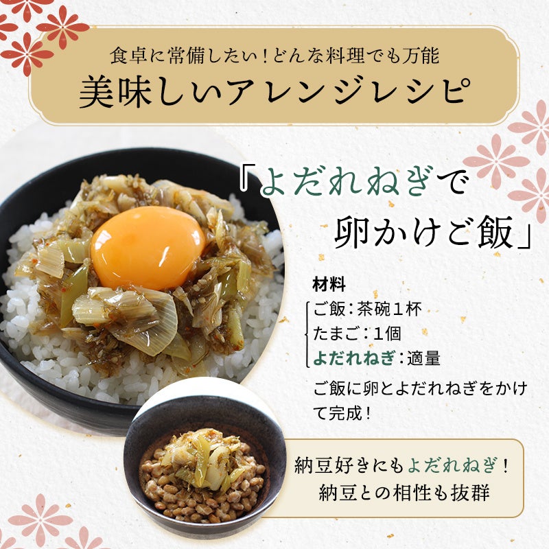 そのまま白ごはんにのせたり、炒め物や和え物の具&調味料として使用したり、その他、卵かけごはんや冷奴、素麺の薬味、焼肉、棒棒鶏など、幅広く活用できます。