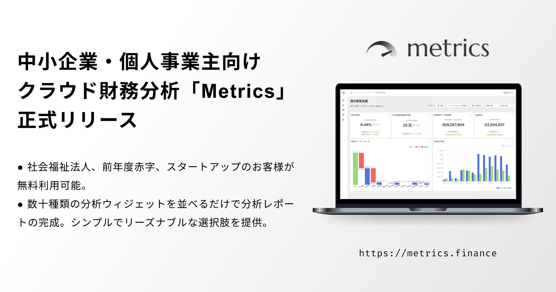 中小企業・個人事業主向け財務分析クラウド「Metrics」をリリース。社会福祉法人・前年度赤字・シード期スタートアップのお客様が無料利用可能