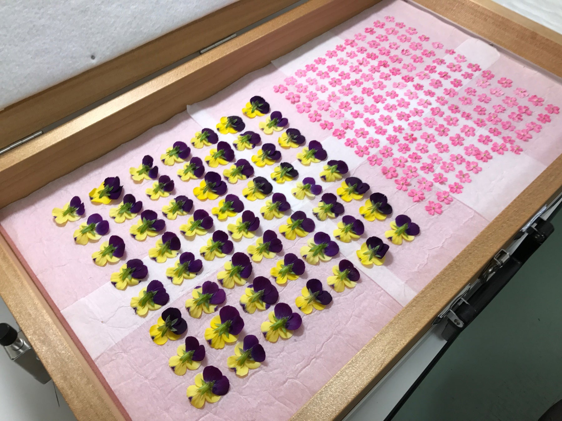 当社のエディブルフラワーは、自然豊かな島根県奥出雲町で、種まきから始まり、栽培期間中は化学肥料、化学農薬を使わずに育てたエディブルフラワーを収穫し、1枚1枚丁寧に押花にして生産・販売しています。