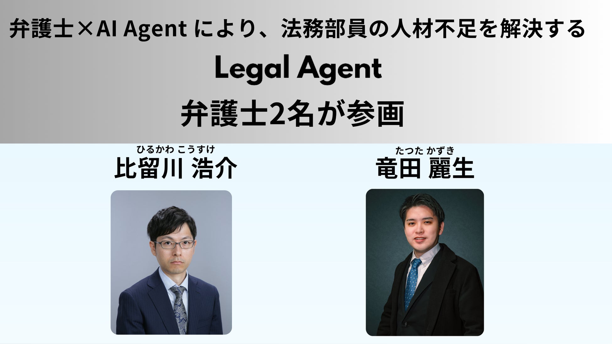 【弁護士×AI Agent】法務部員の人材不足を解決する Legal Agent 弁護士2名が参画