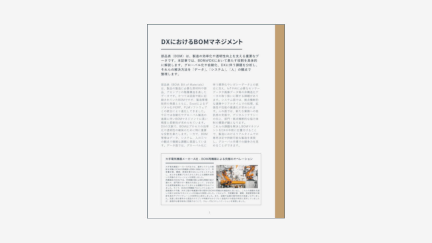 本ガイドでは、DXにおけるBOMマネジメントの課題を分析し、その解決方法を「データ」「システム」「人」の観点で整理しました。また、BOM構築・再構築の進め方や効果をイメージしやすくするために、実際の企業における複数の事例を紹介しています。