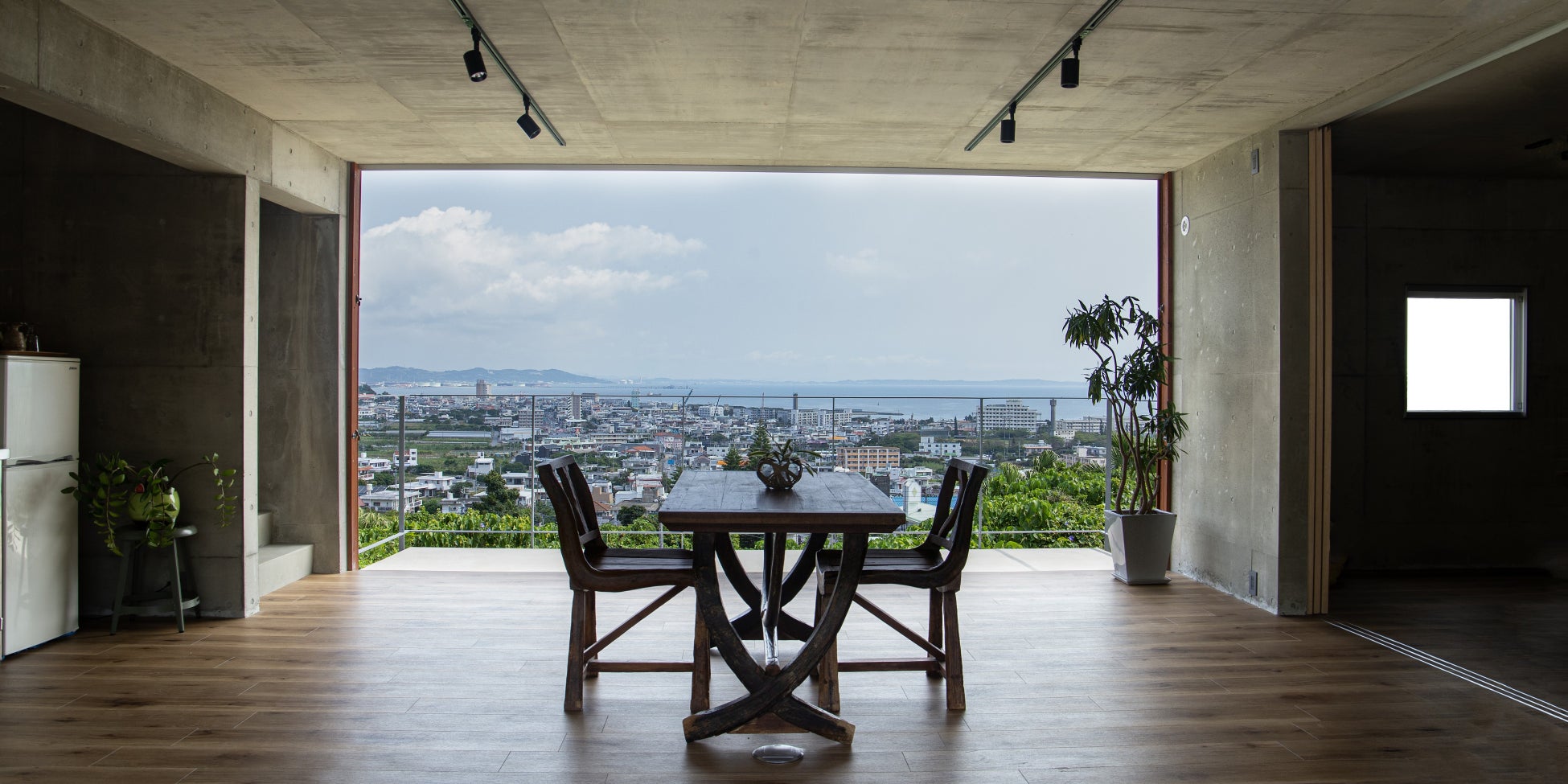 窓がフルオープン、抜群の眺望 広々とした1階スペース