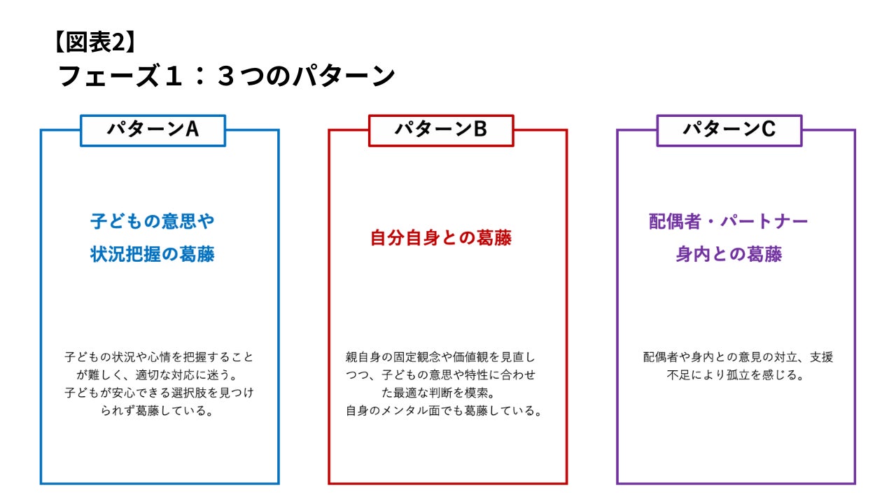 また、特にフェーズ1で親が抱える葛藤には、大きく分けて以下の3つの傾向があることがわかりました【図表2】。