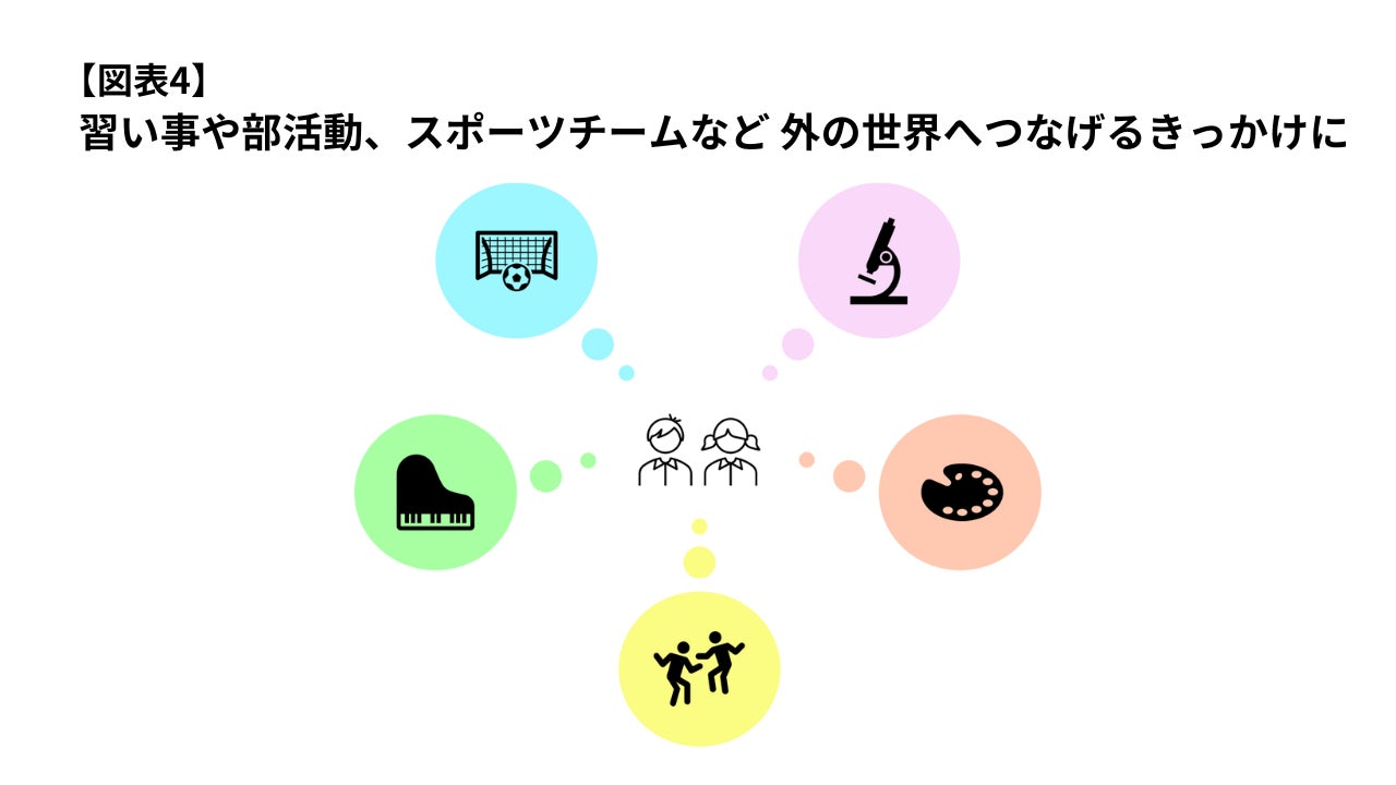 半数以上のケースで習い事や部活動、スポーツチームなどが子どもを外の世界へつなげるきっかけに。