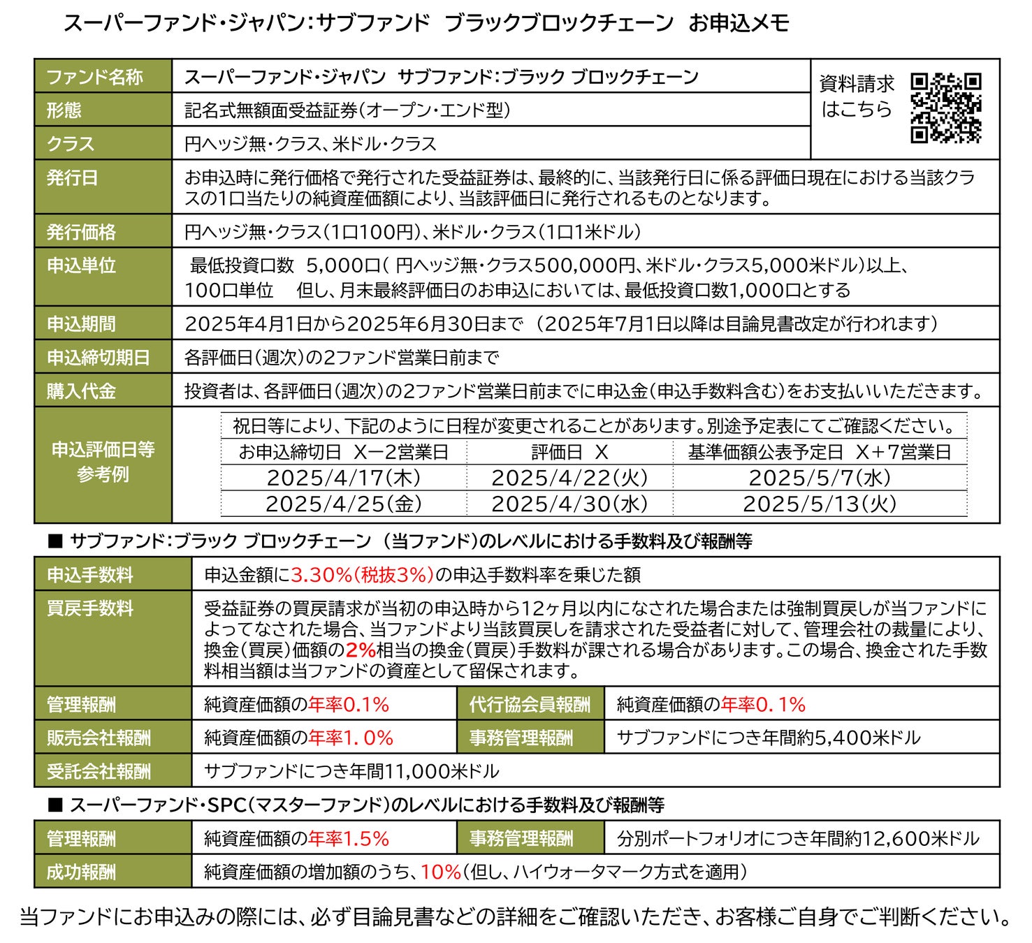 2025年4月、スーパーファンド・ジャパン株式会社は新商品「ブラック・ブロックチェーン 」ファンドを発売しました。