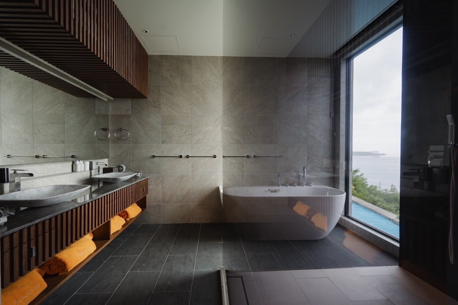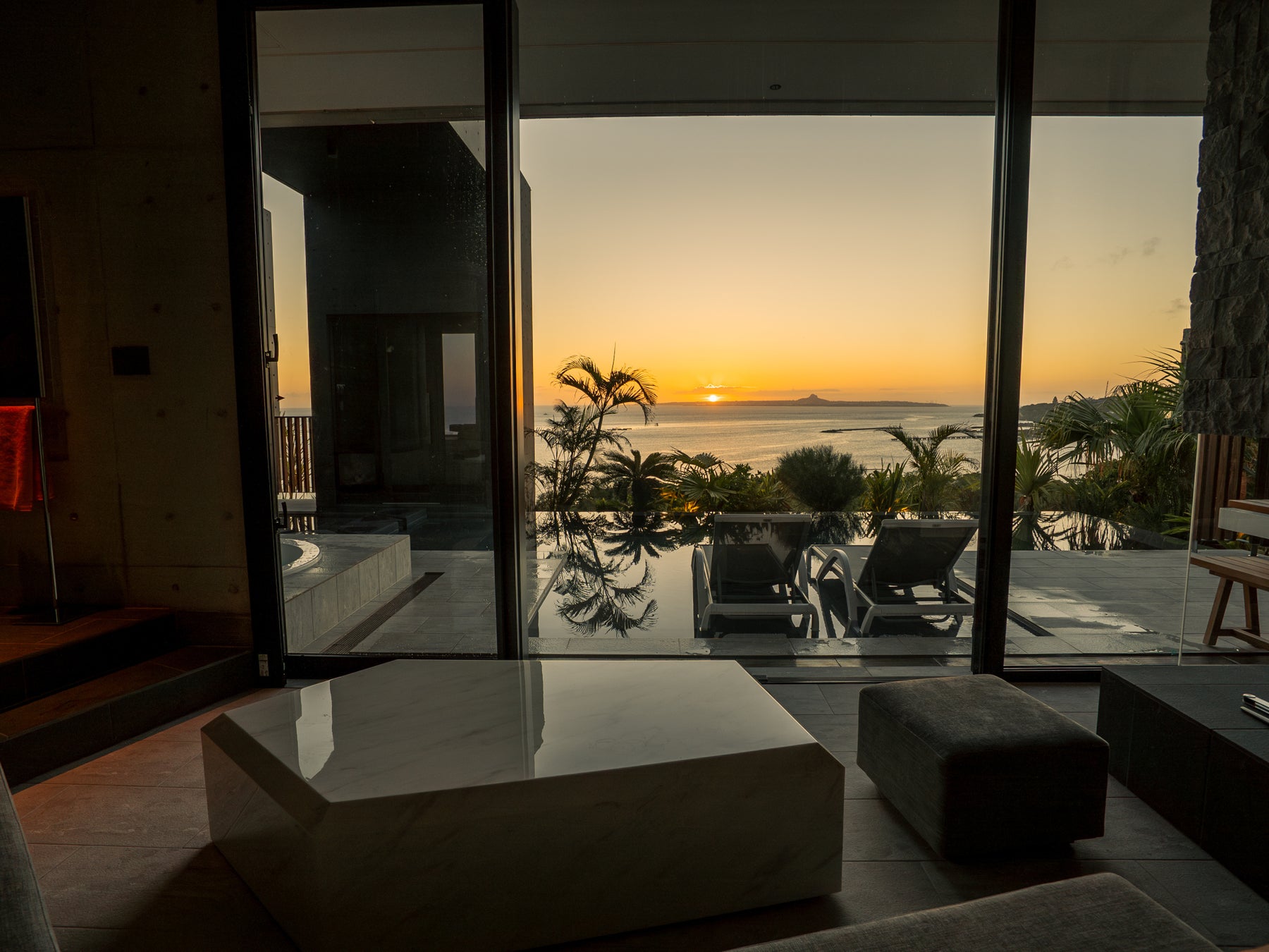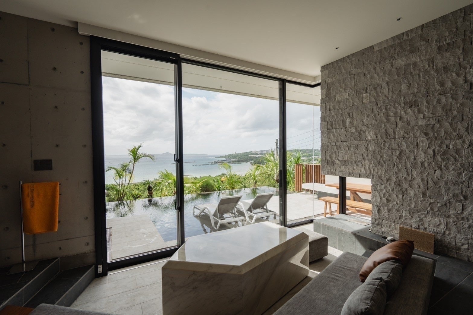 沖縄の高台に位置する本施設は、東シナ海や伊江島を望む圧巻のパノラマビューを誇り、温水インフィニティプール、屋外ジャグジー、プライベートサウナを完備。季節や天候を問わず一年中快適にご利用いただける環境を整えています。