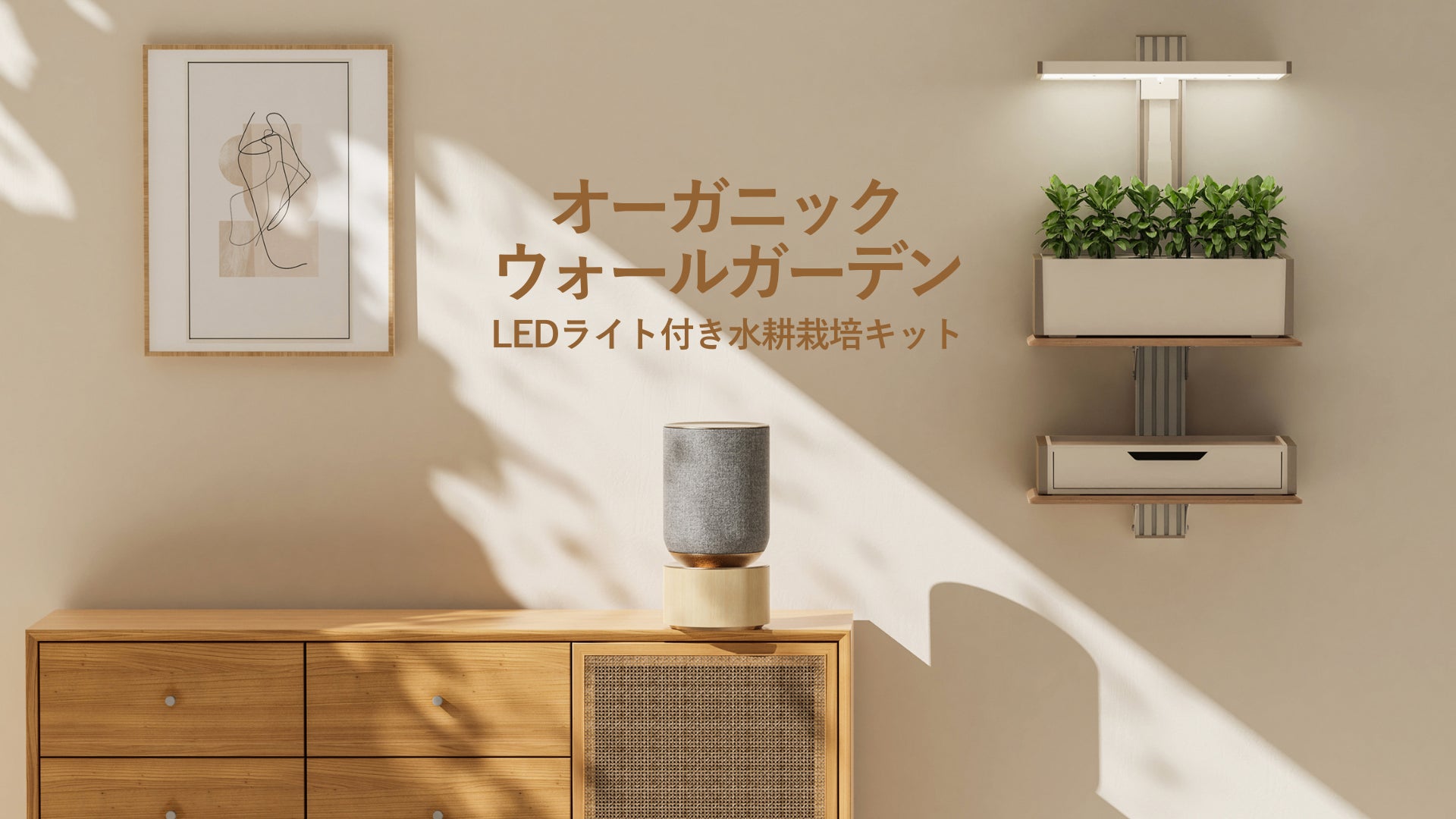 「オーガニックウォールガーデン」は、野菜や観葉植物を栽培できるLEDライト付きのハイドロガーデニングシステム(水耕栽培キット)です。