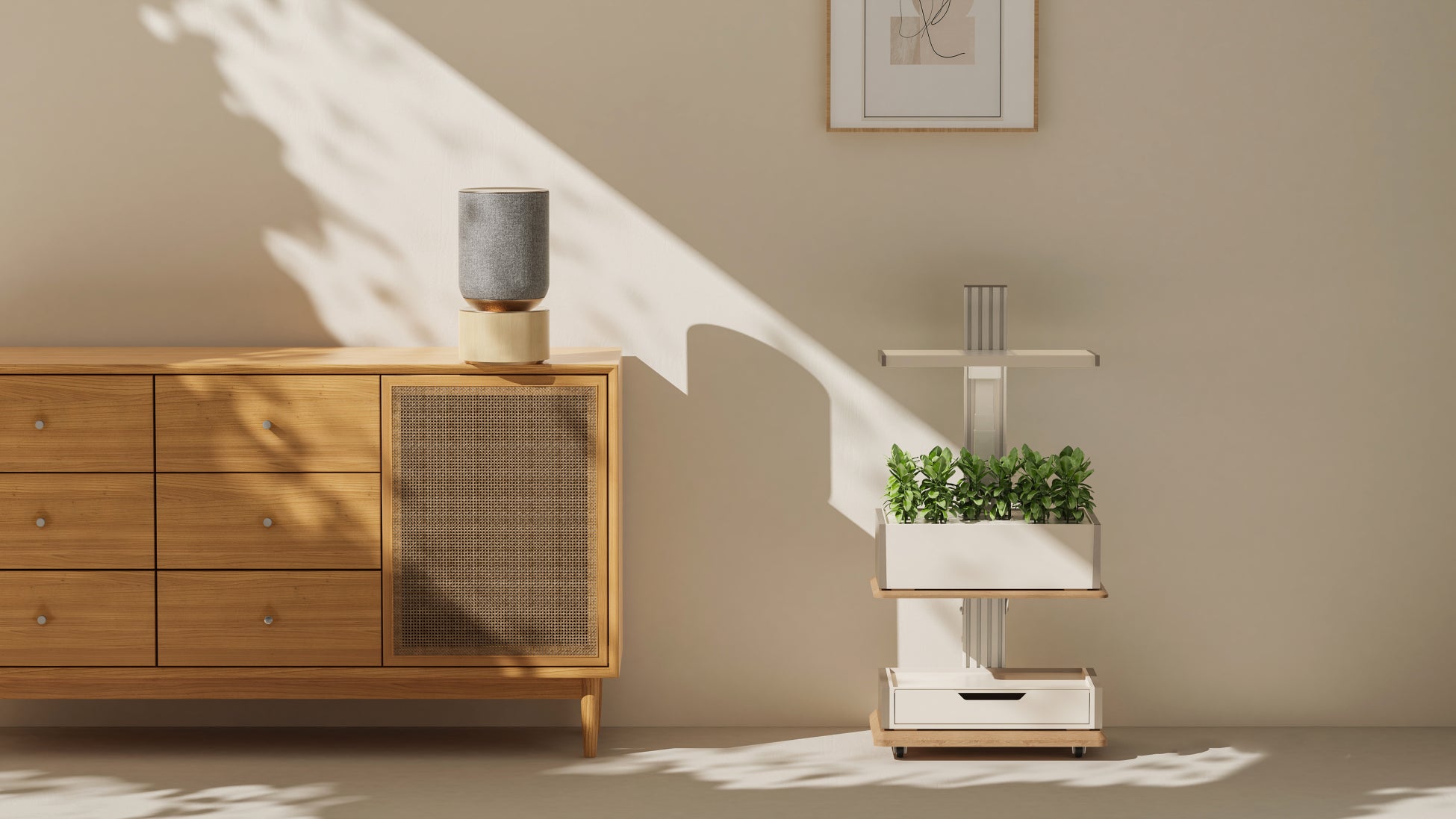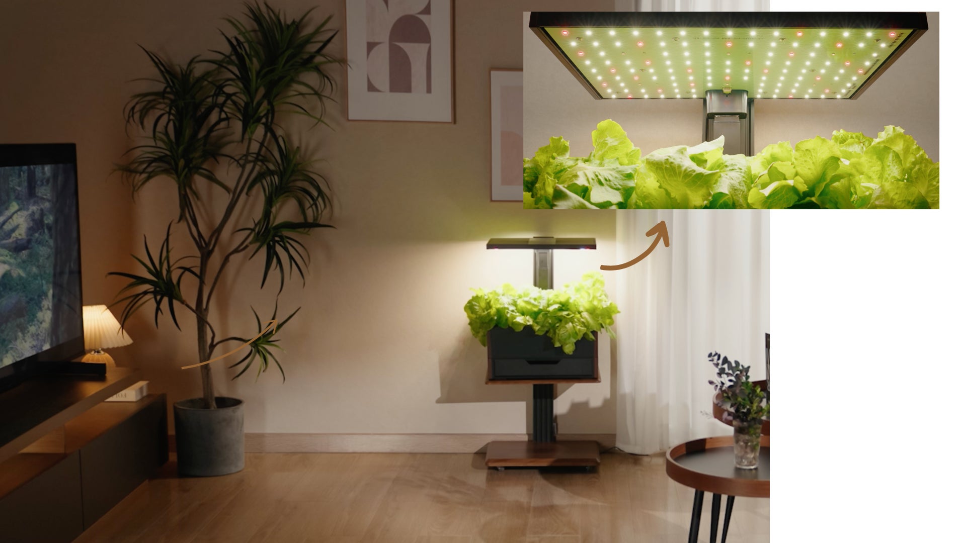 「オーガニックウォールガーデン」は、太陽光の届かない部屋でも植物が育てられるLEDライトを設置しています。