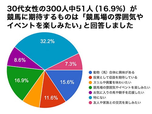 「競馬に期待するものは何ですか?」というアンケートで51人(16.9%)が「競馬場の雰囲気やイベントを楽しみたい」という結果になりました。