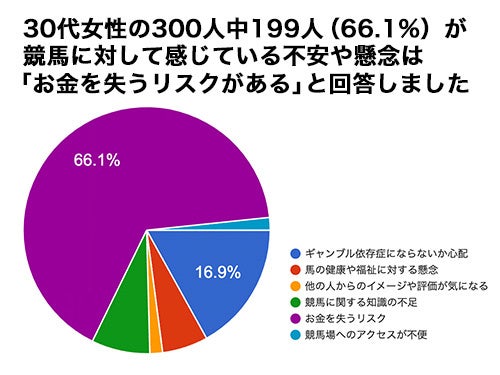 20代女性の300人を対象とした「競馬に対して感じている不安や懸念は何ですか?」というアンケートで199人(66.1%)が「お金を失うリスクがある」という結果になりました。