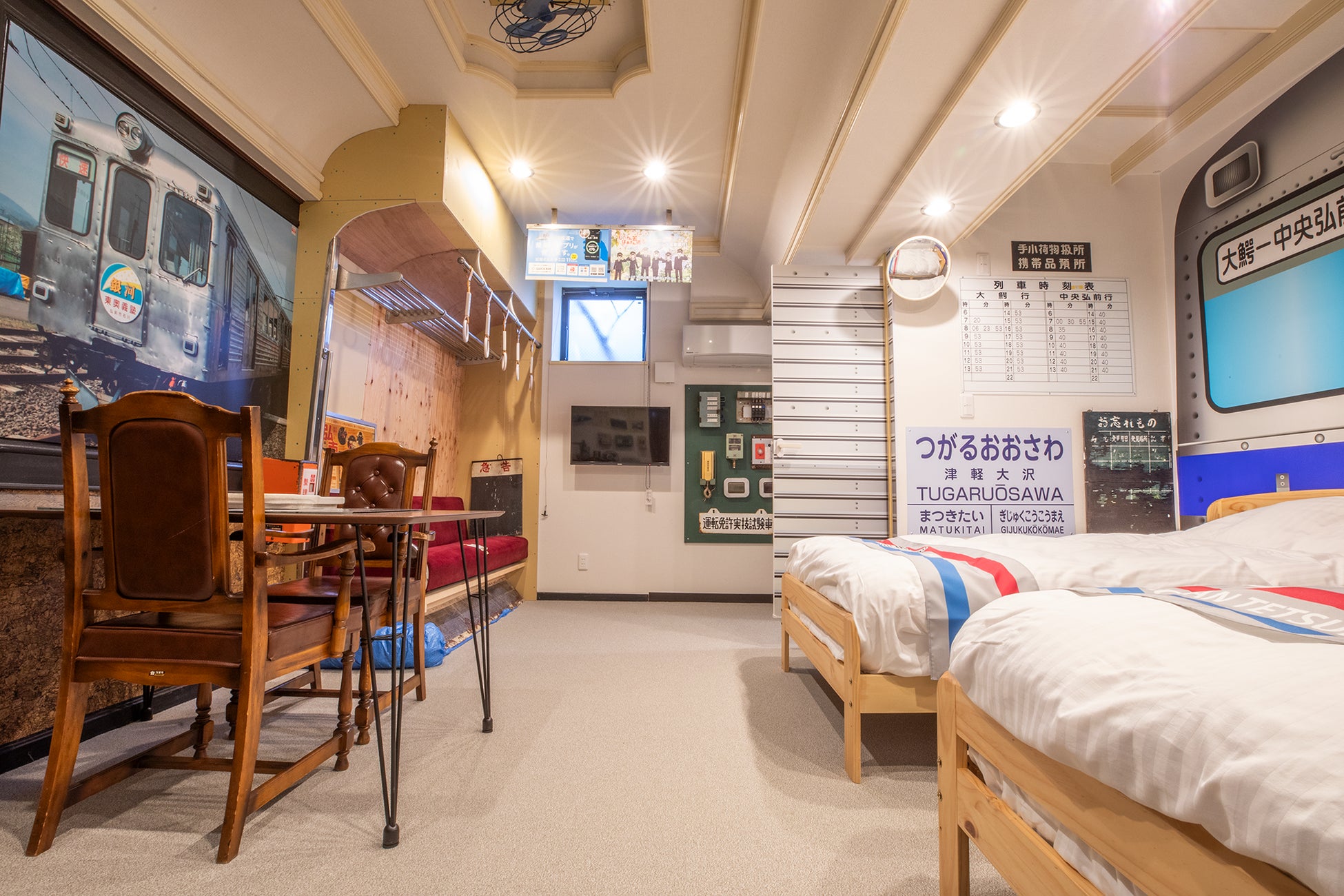 実際の運行時に使用していた備品、機器類で装飾し車内を再現。昭和レトロな魅力たっぷり、津軽の鉄道文化にひたる宿泊体験はいかが?