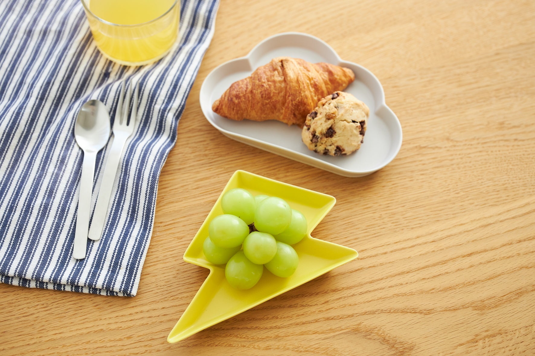 『WEATHER REPORT プレート』は、日本の伝統的な陶磁器の一つである美濃焼のプレートです。美濃焼の職人が丁寧に仕上げた上質な食器を、マットな質感のカラフルで遊び心のある形にしました。ラインアップは、年間を通して見る機会の多い天気予報のアイコン「たいよう」「くも」「あめ」「かみなり」の4種。