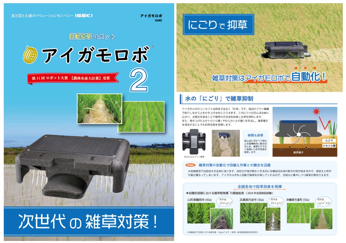この度、フルモデルチェンジを行い、IGAM2 アイガモロボ 2を2025年3月より27.5万円(税込)で販売いたします。また、これまでの抑草効果に加え、ジャンボタニシの食害抑制やメタンガス発生量低減のメカニズムについて解明されつつあるので、お知らせいたします。