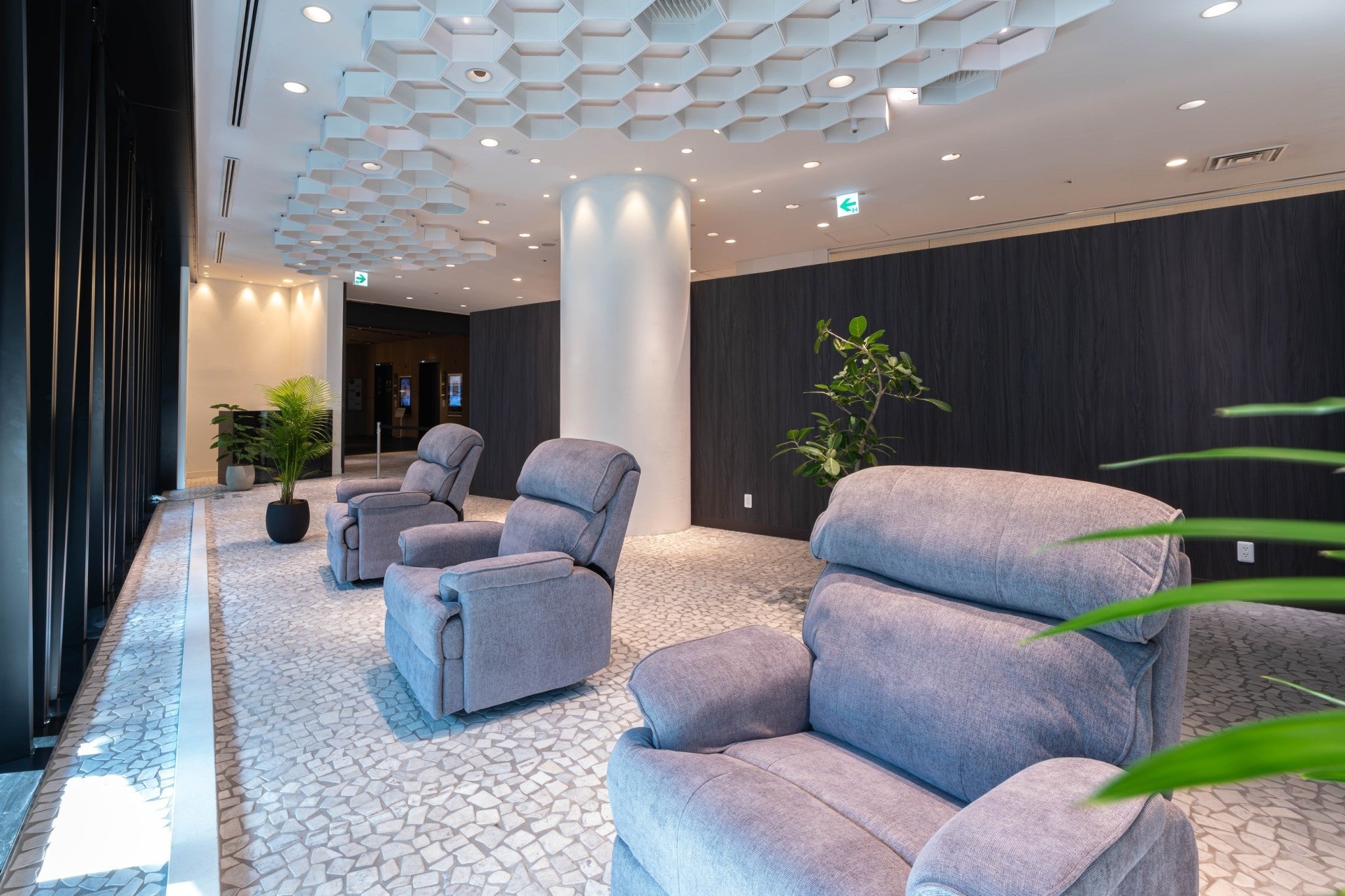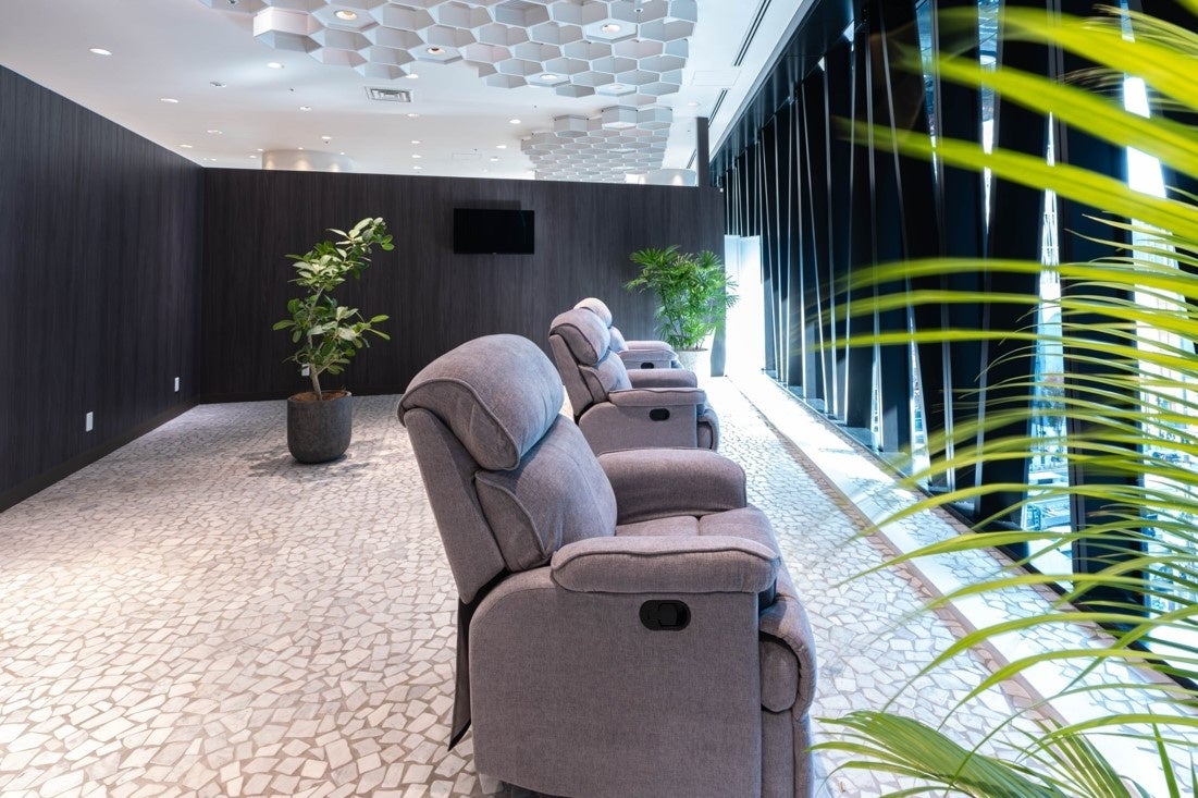 エステ後は、銀座を眺望できる空間でお寛ぎいただけます。リクライニングチェアで、足を延ばして心身を解放できるリラックスタイムをお過ごしください。また、会員様同士での談話スペースとしてもご利用いただけます。