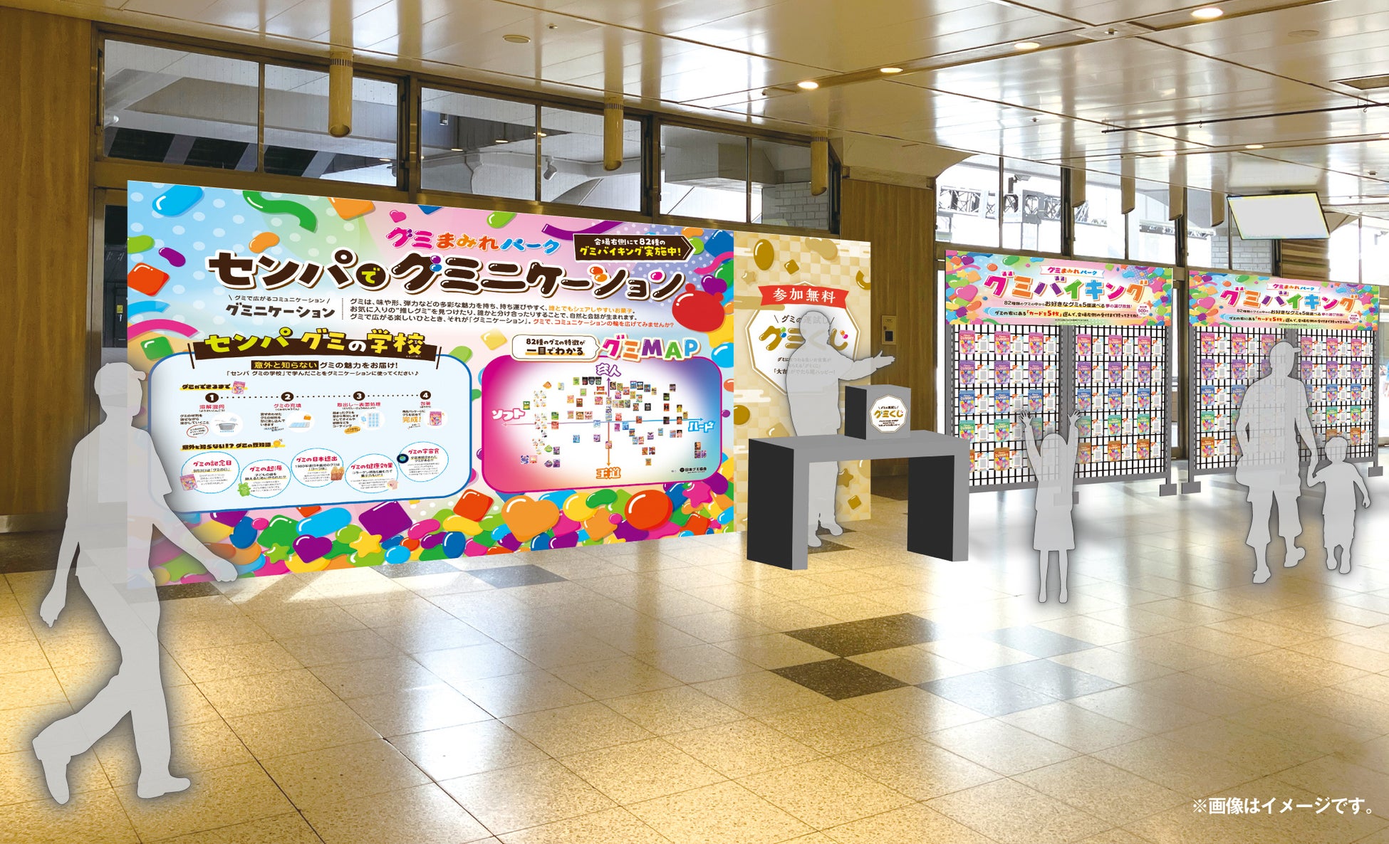 内容:グミについての豆知識・グミMAPを記載した巨大パネルを展示、グミニケーションシールの無料配布