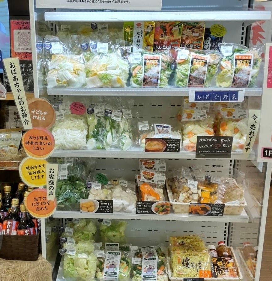カット野菜の「お節介野菜」は、真庭市の農家さんが一生懸命に育てた野菜を使っています。真庭市のおばあちゃんたちが規格外野菜など地域の野菜を中心にカットして商品化。忙しい子育てママたちのために「ようがんばっとるなあ、ここまでしといたけぇ」「空いた時間で絵本でも読んじゃれぇ」そんな真庭のおばあちゃんたちの「お節介」から生まれた人気商品です。