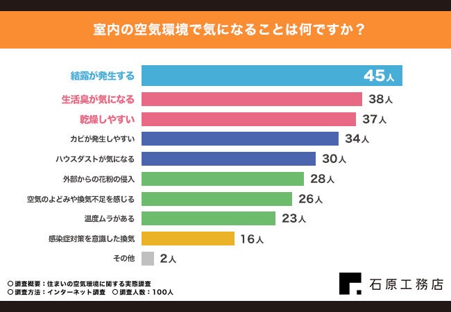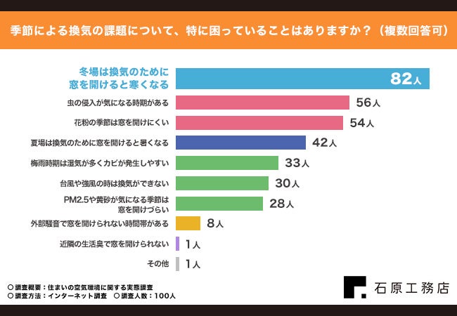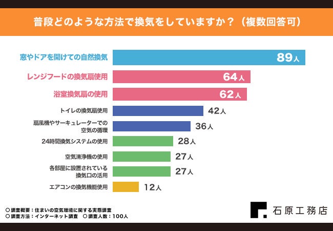 そこで、石原工務店(https://www.ishihara396.com/ )は、戸建て住宅に居住している全国20〜60代の男女100名を対象に「住まいの空気環境」に関する実態調査を実施しました。