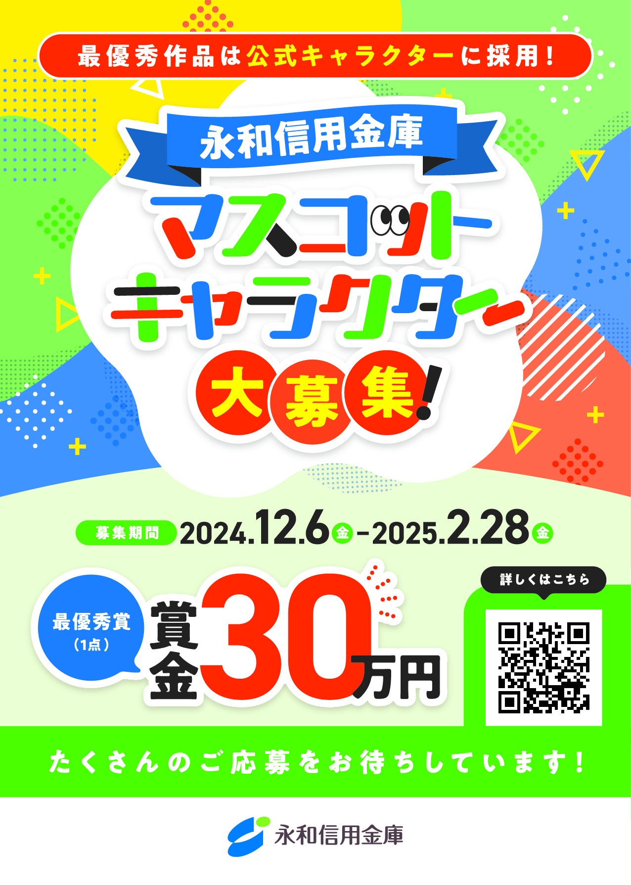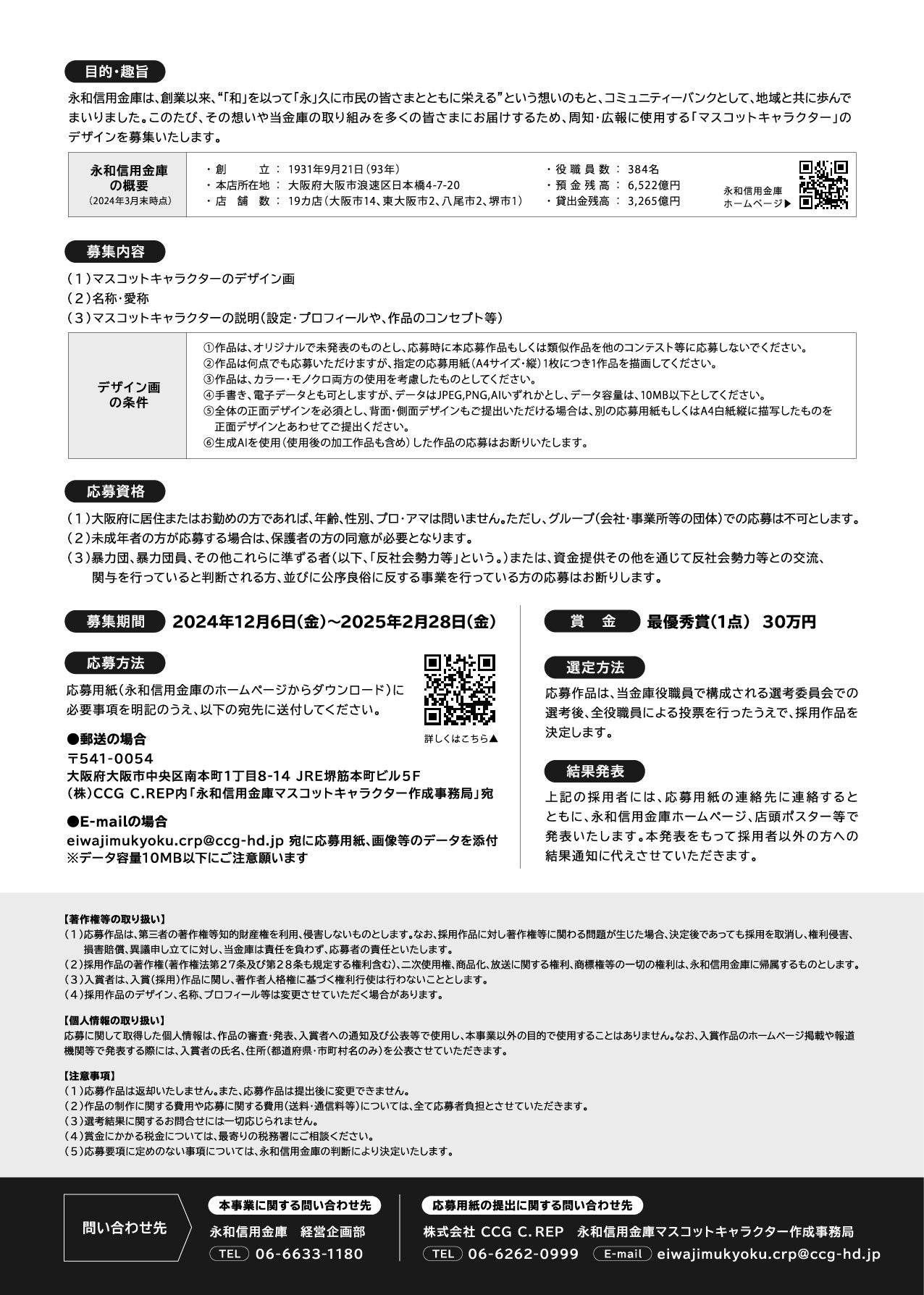 賞金30万円‼ 大阪で創業93年目を迎えた永和信用金庫が新マスコットキャラクターのデザインを一般公募(12/6~2/28)