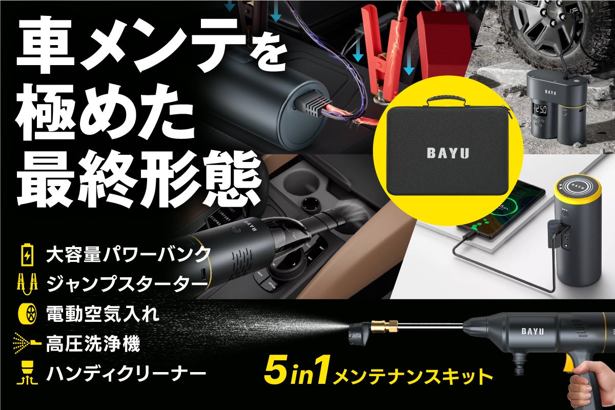【最高峰の車メンテナンスキット】カーバッテリー充電、掃除、洗車、空気入れもお任せ!クラウドファンディング【キャンペーン開催中】