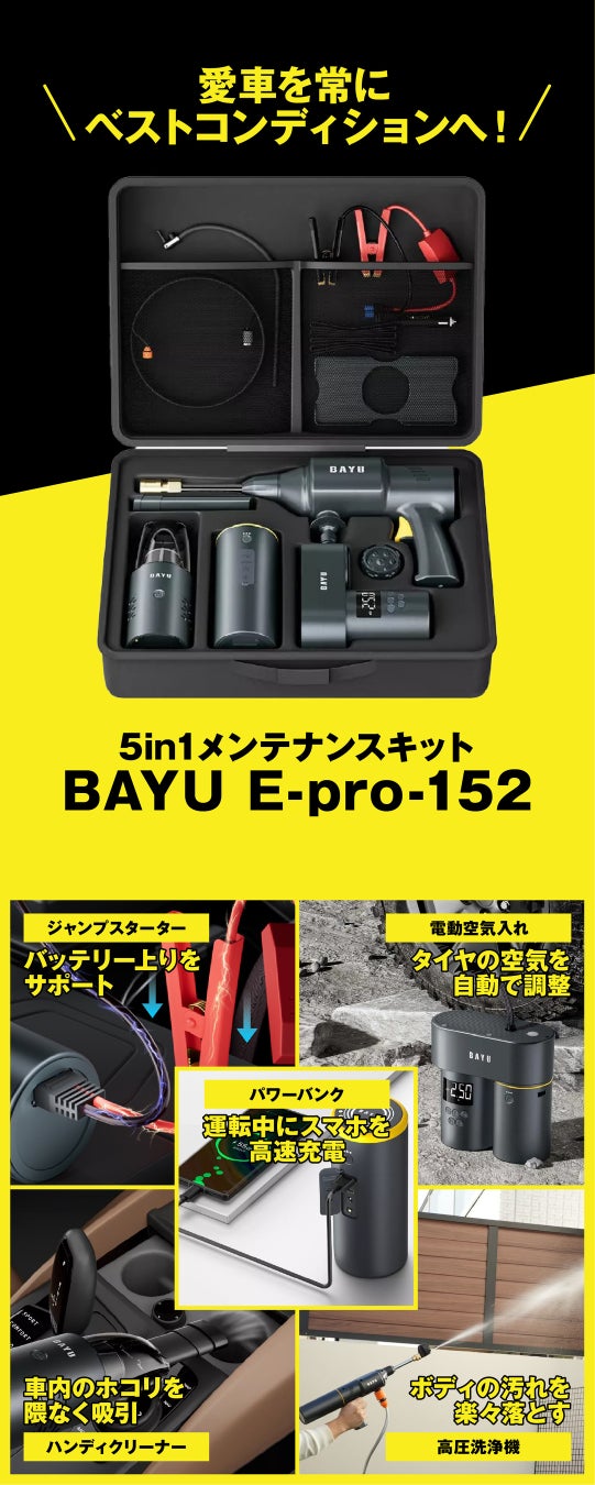 【BAYU E-pro-152】はそんなコンセプトから、カーメンテナンス用品専門メーカーの英知を結集してついに完成しました。