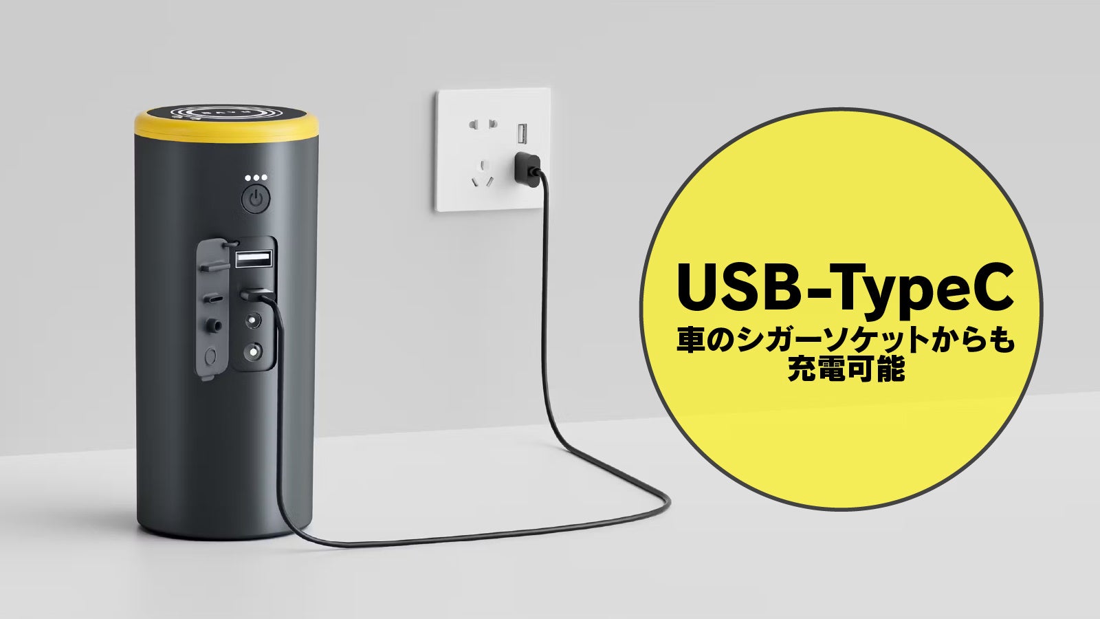 パワーバンクにはUSB-TypeAとDC12Vの出力ポートを搭載。