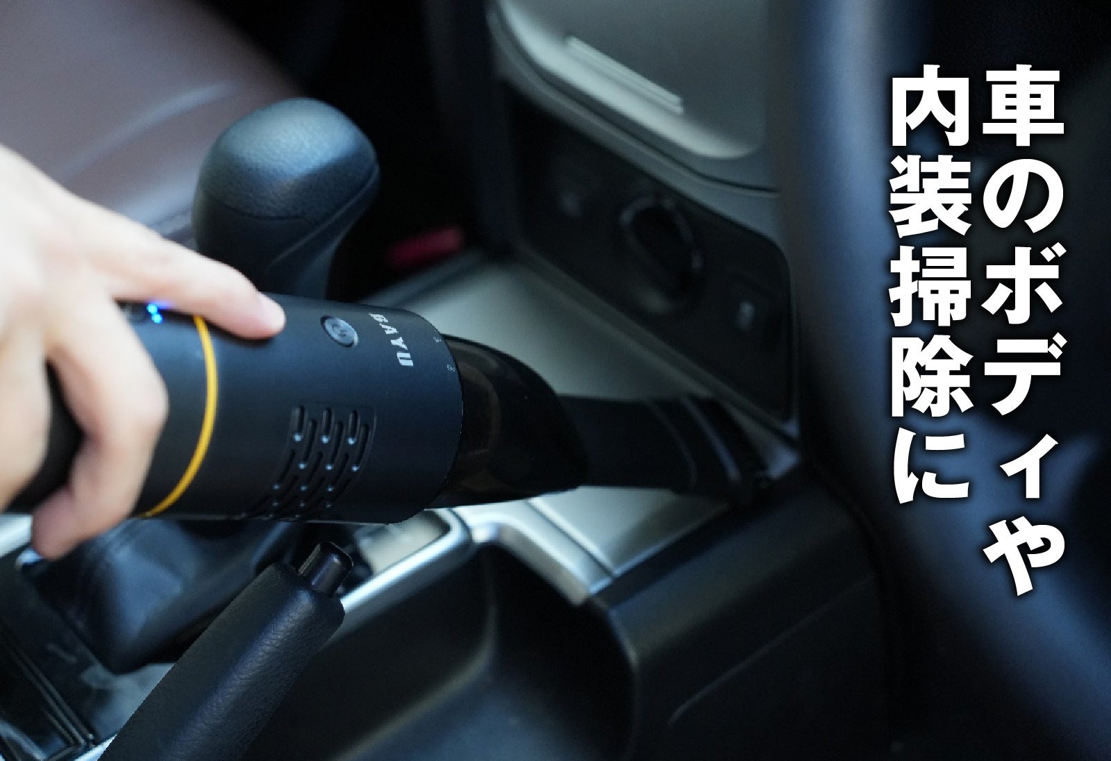 紙パックが不要のサイクロン式で、最大真空度19000Paの吸引力を発揮し、車内のホコリや砂を強力に吸い込みます。また隙間ノズルとブラシノズルも付属。座席やコンソールの隙間のホコリも徹底的にお掃除できます。