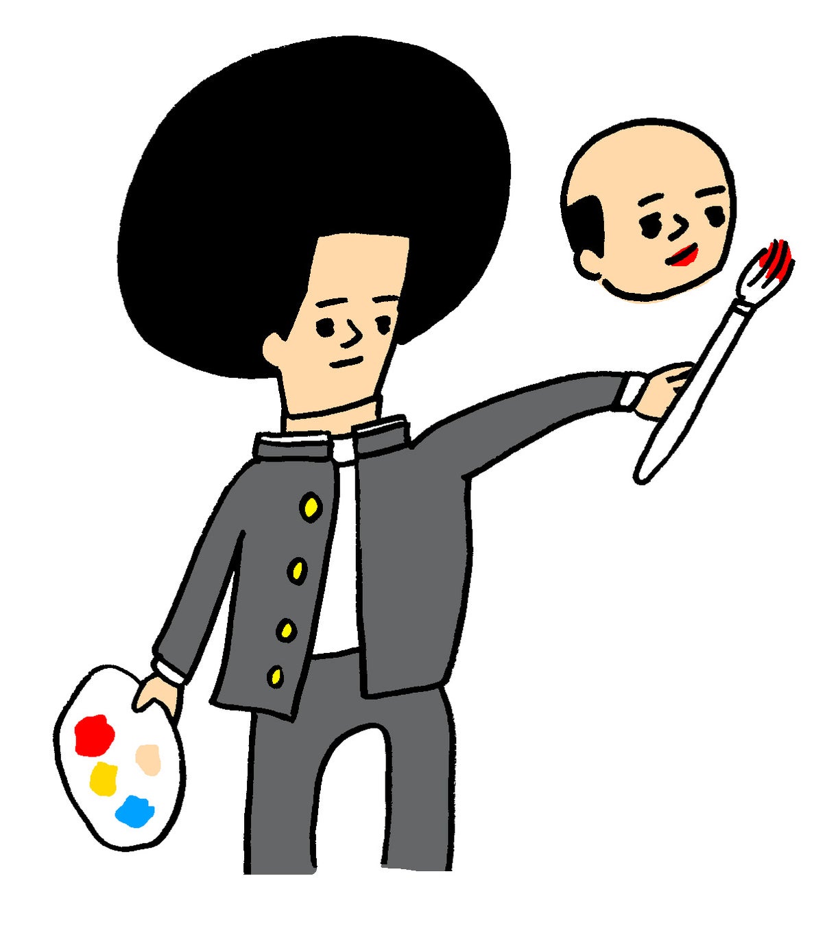 イラストレーター・花くまゆうさくが描く南島原モチーフの「アフロとおじさん」のキャラクター