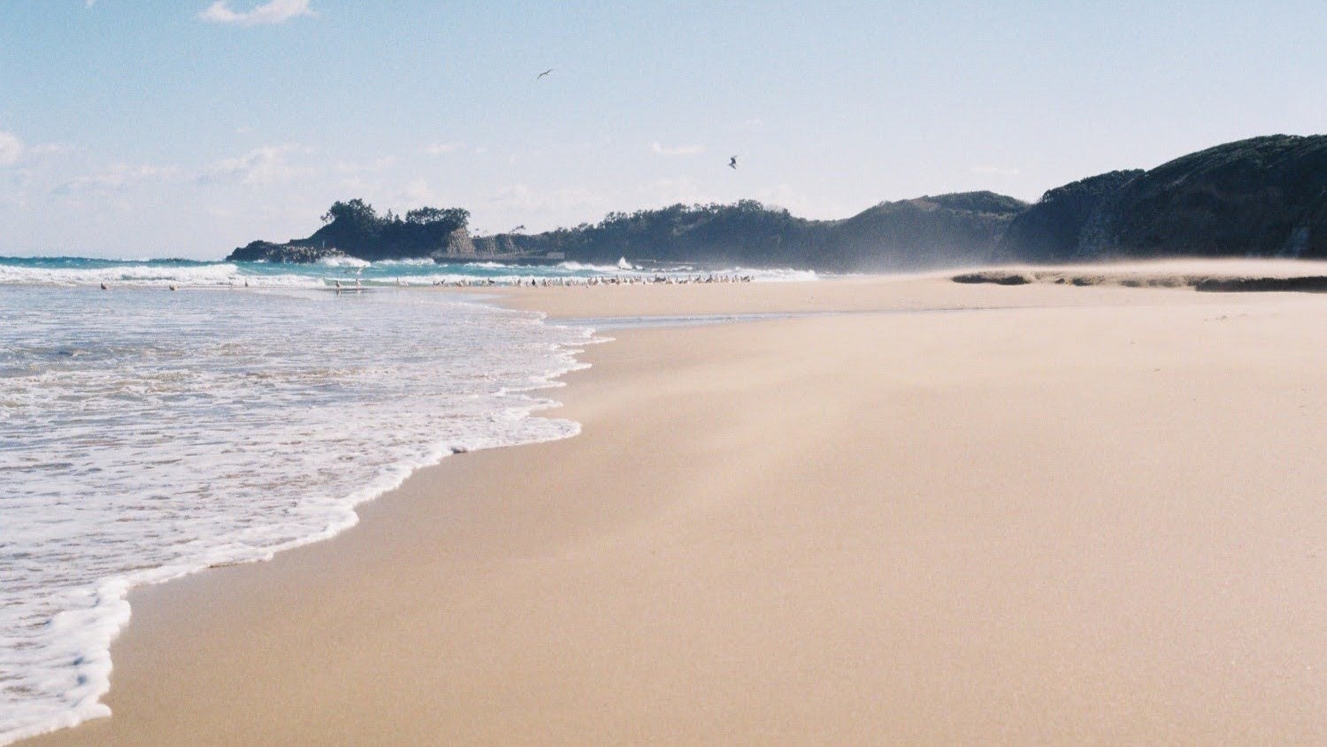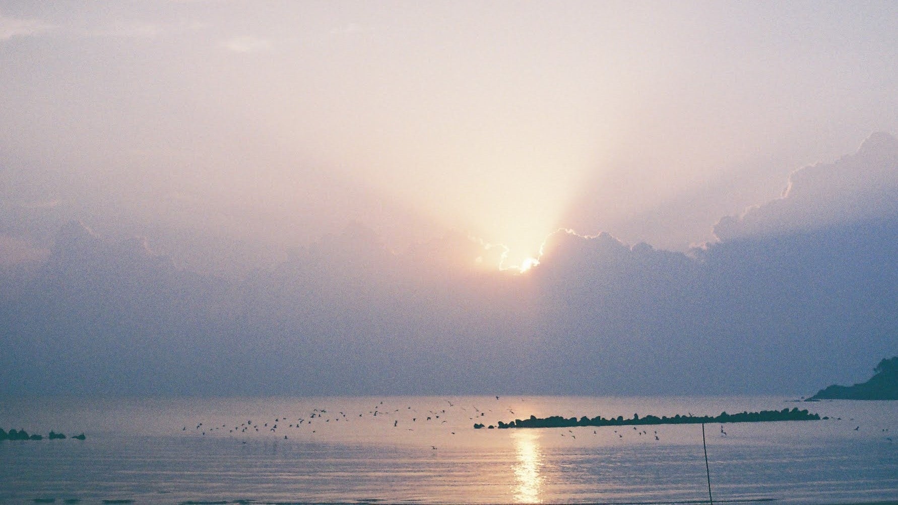 水面をたわむれる海鳥を眺めてうたたねしていると、もう島影が見えてきます。