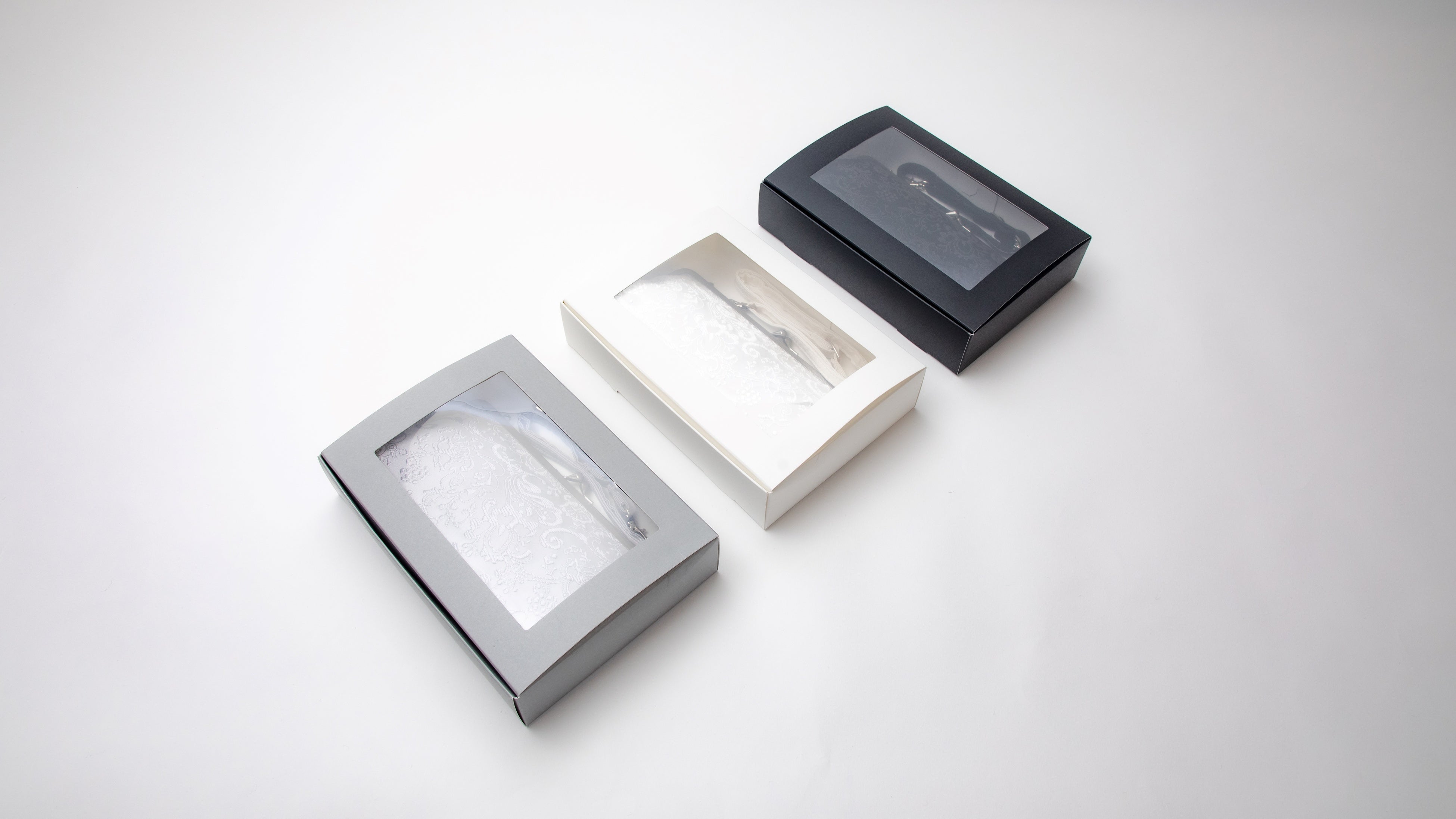 〇それぞれのカラーに合わせたパッケージは中の織柄も綺麗に見えるような作りで、ギフトとしても収納用としても上品で機能的です。