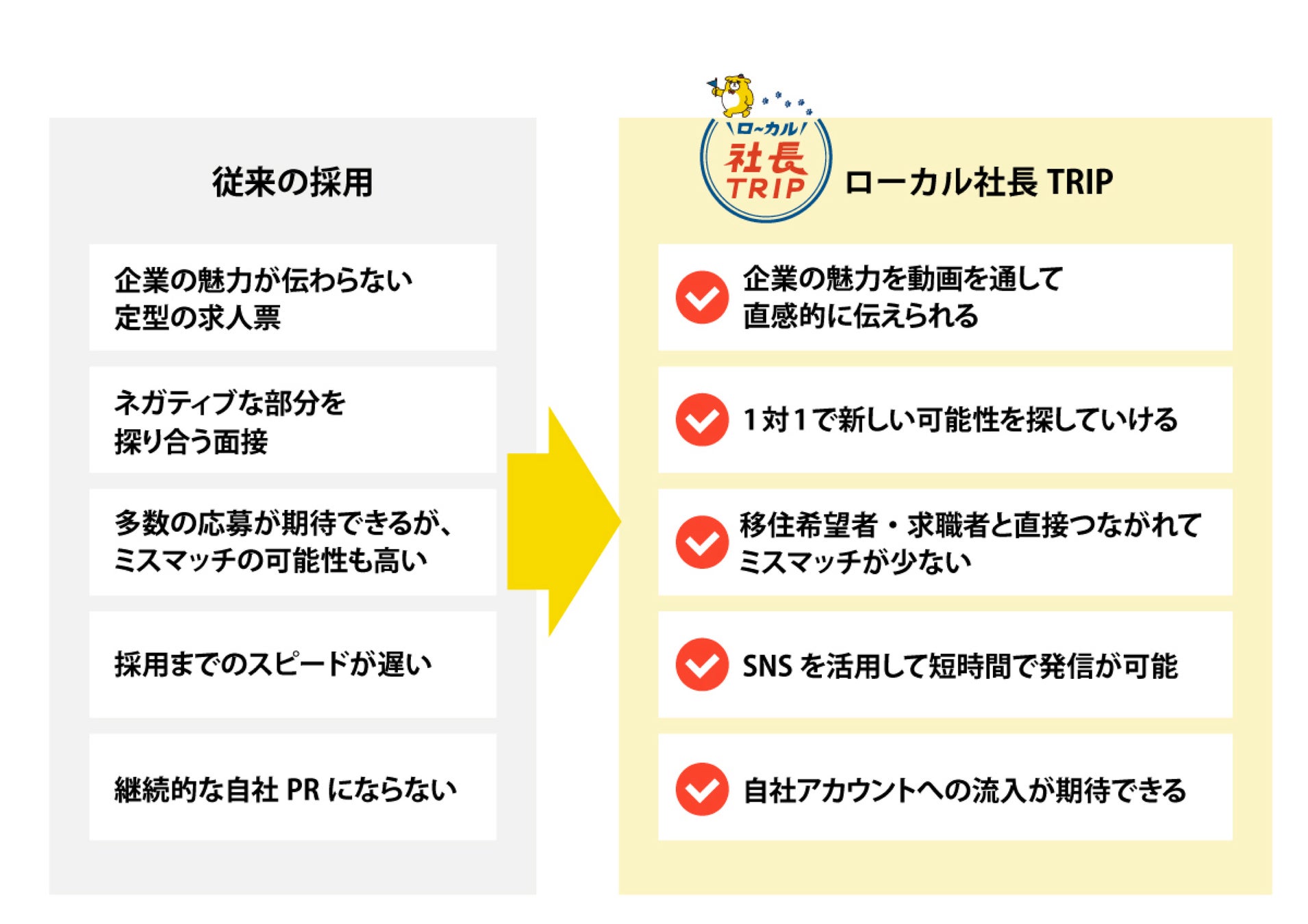 従来の採用方法には無い、地方の企業にマッチしたメリットがあります。