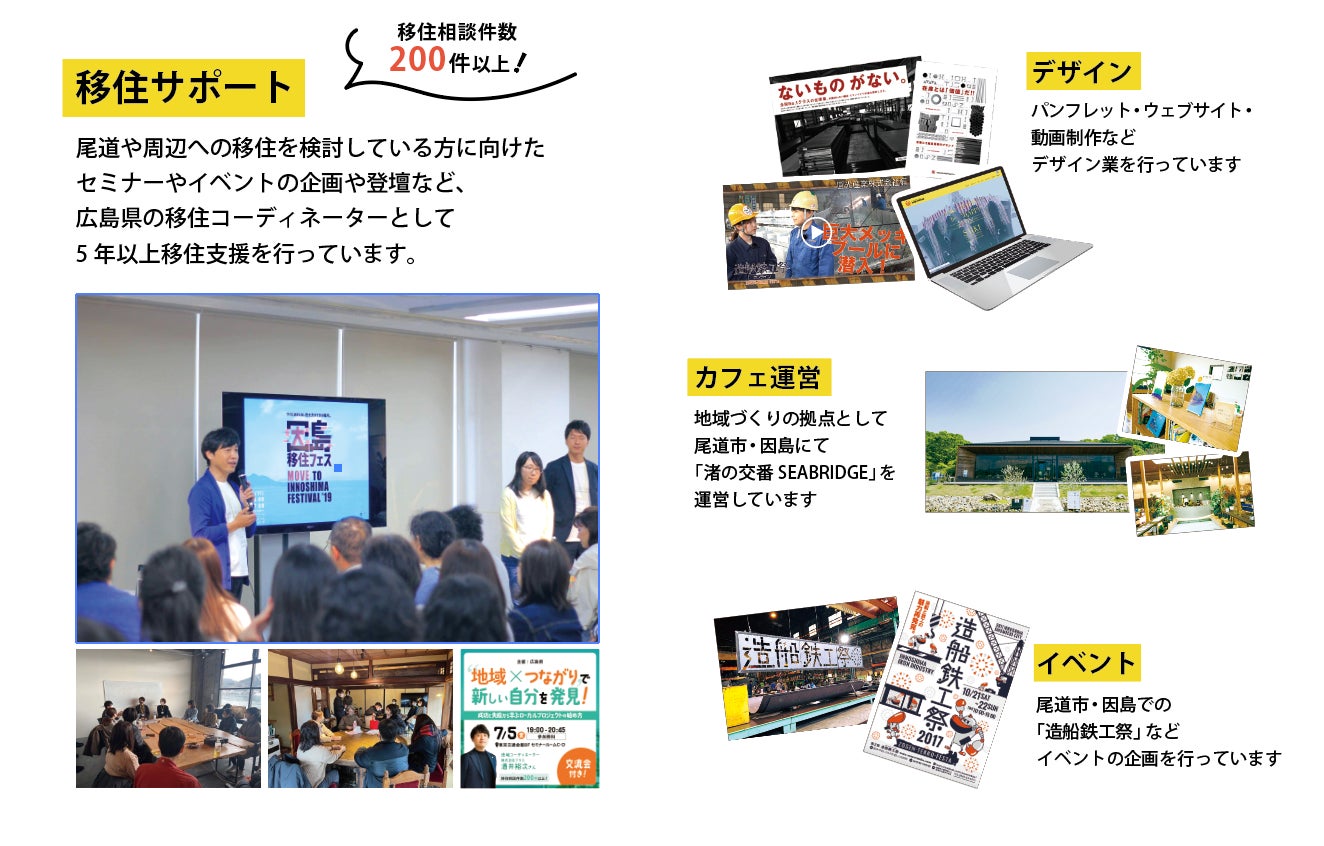 2007年、新聞や雑誌広告を中心に扱うデザイン会社を東京で創業。2011年からは広島県尾道市にも拠点をおき、デザインで地域を変えていく街づくりなどを行う。主な事業内容は、WEBや動画の制作、広告配信や地域プロジェクトなど多岐にわたる、「企業のまだ見ぬ価値を創造し、経営をデザインで変えていくこと」をミッションにデザインの力で企業の課題解決をサポートしています。