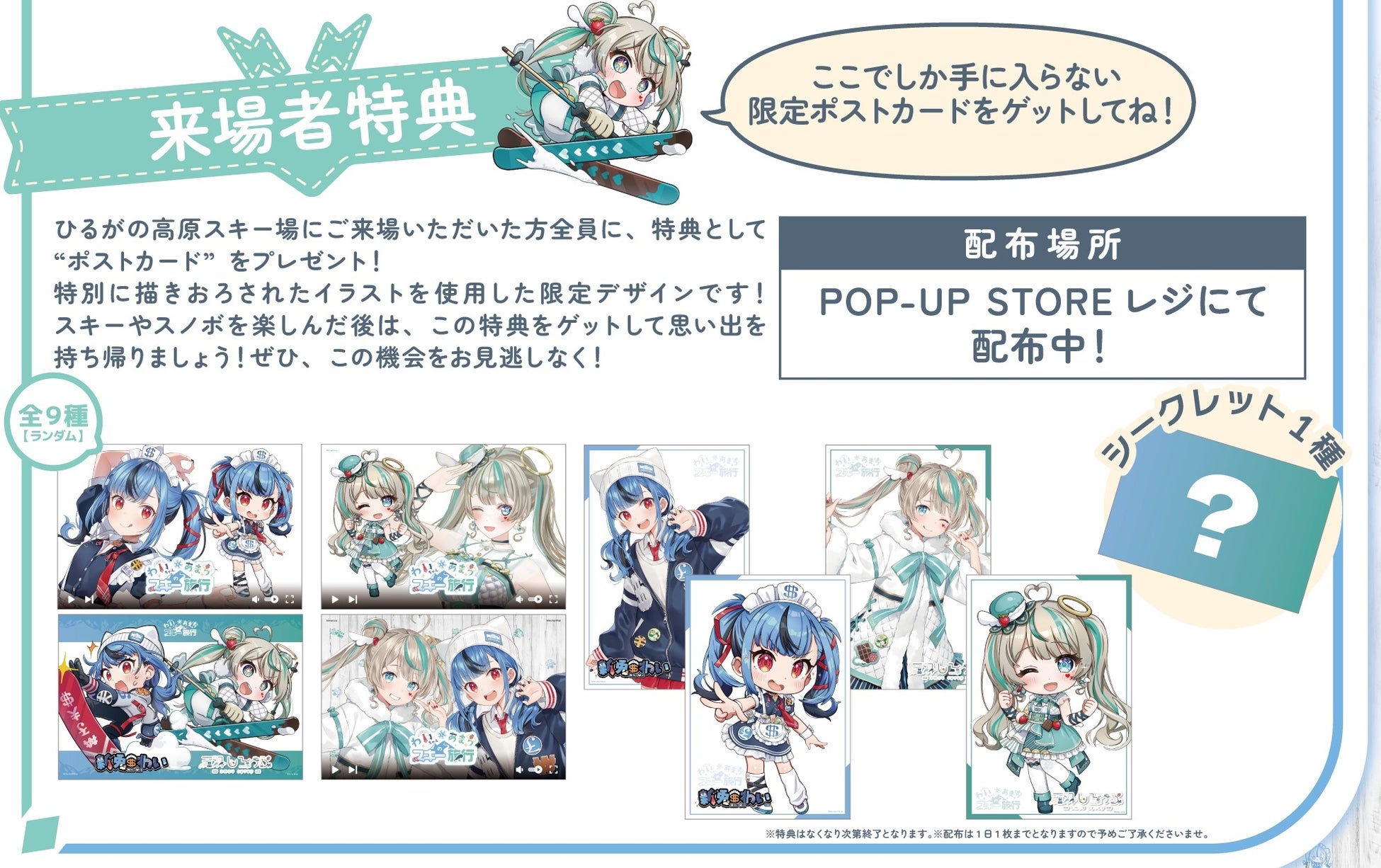 イベント期間中、来場者にオリジナルポストカード(全9種)をランダムで1枚プレゼントいたします。