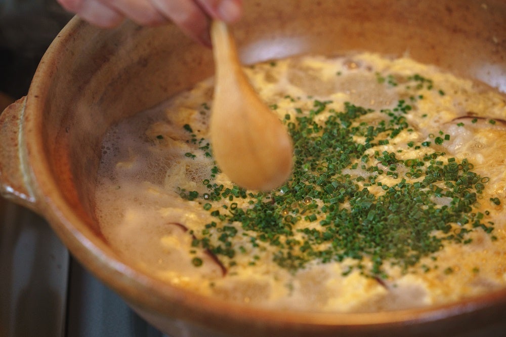 とらふぐのあらで仕立てる本場下関流のふくちり。川棚グランドホテルお多福ではおもてなし係がお客様の目の前でお作りし、一番美味しいタイミングでお取り分けいたします。とらふぐと地野菜の旨味がたっぷり溶け込んだお出汁で仕上げる雑炊は、とらふくフルコースを締めくくる至福の味。