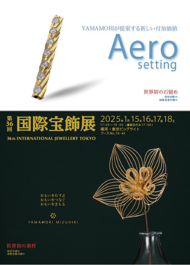 【株式会社山森製鎖 第36回国際宝飾展に出展!】2025年1月15日~18日の4日間IJT2025にて世界初の新石留工法「Aero Setting(エアロセッティング)」を含む新作100点以上を発表!