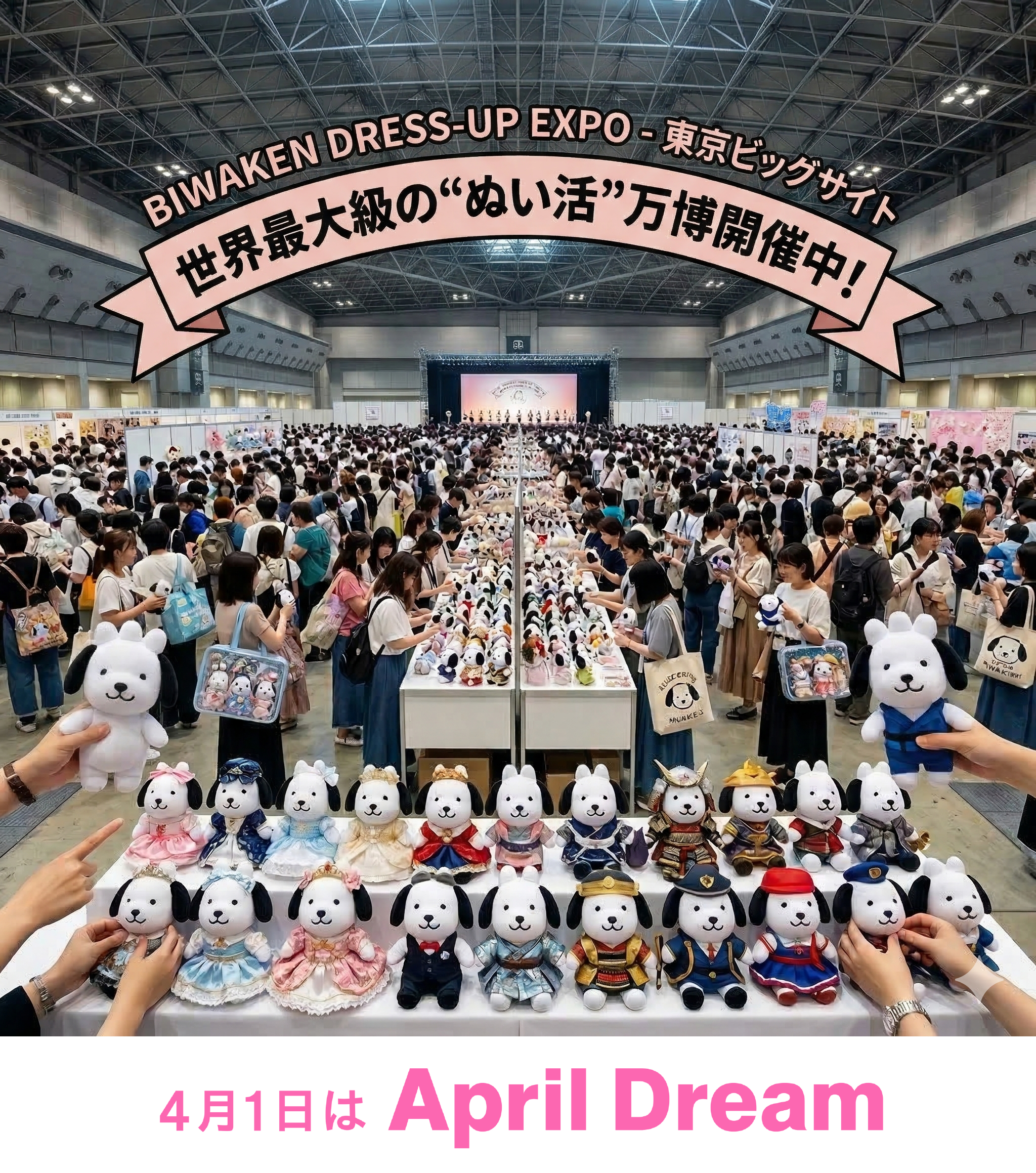 私たちは、びわけんを愛する「ぬい活」プレイヤーと、卓越した技術を持つ衣装クリエイターが一堂に会するびわけん専用衣装の祭典「BIWAKEN DRESS-UP EXPO」を開催し、会場となる東京ビッグサイトが、びわけん一色に染まる未来を思い描いています。