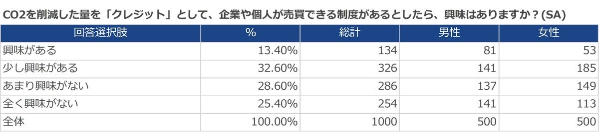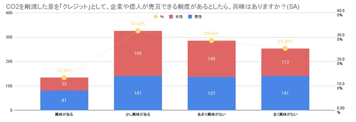 Q. CO2を削減した量を「クレジット」として、企業や個人が売買できる制度があるとしたら、興味はありますか?(SA)