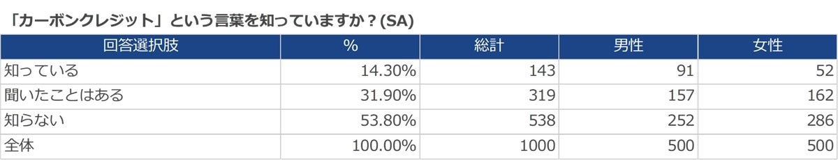 Q. 「カーボンクレジット」という言葉を知っていますか?(SA)