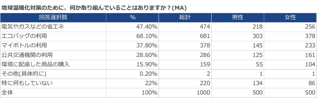 Q. 地球温暖化対策のために、何か取り組んでいることはありますか?(MA)