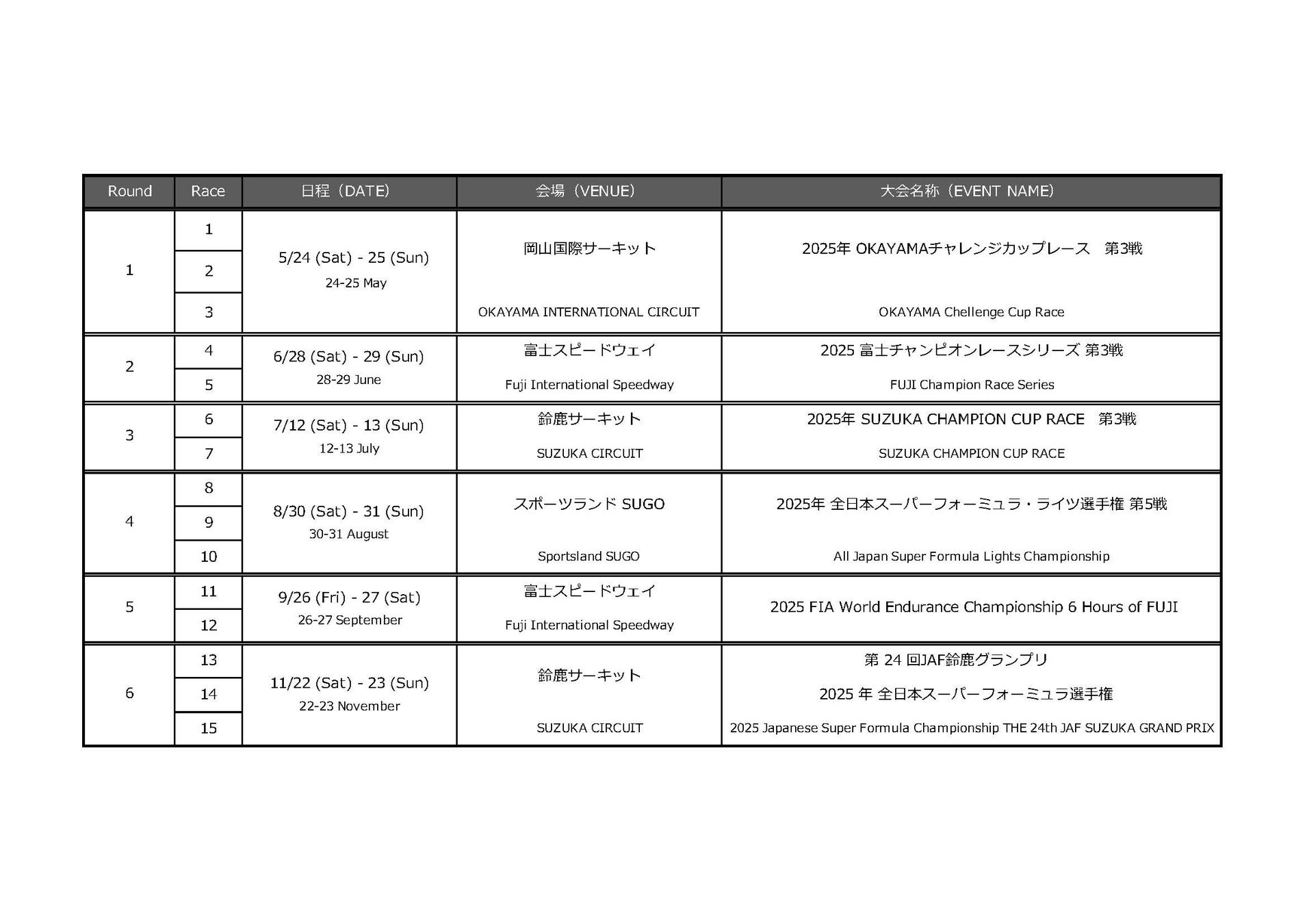 FRJは、世界的なモータースポーツの登竜門である「FIAフォーミュラ・リージョナル」規格に準拠し、国内の若手ドライバー育成と国際的ステップアップを目指して開催されています。スマートフォンゲーム『にゃんこ大戦争』などで知られるポノス株式会社は、これまでも次世代ドライバー育成への取り組みに力を入れており、本パートナーシップもその一環として、モータースポーツ分野での新たな試みとなります。