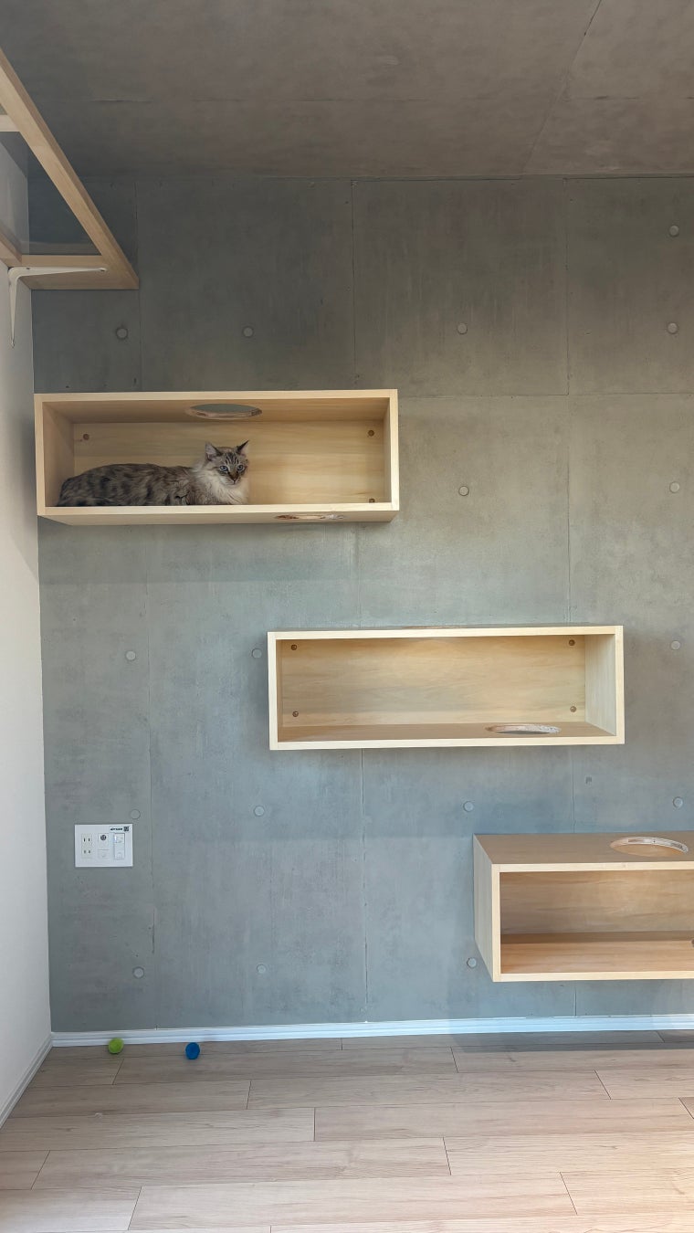 ・室内にはシンプルなキャットウォークを備え、飼い主が自由に工夫して、より良い住まいにカスタムできる仕様です。