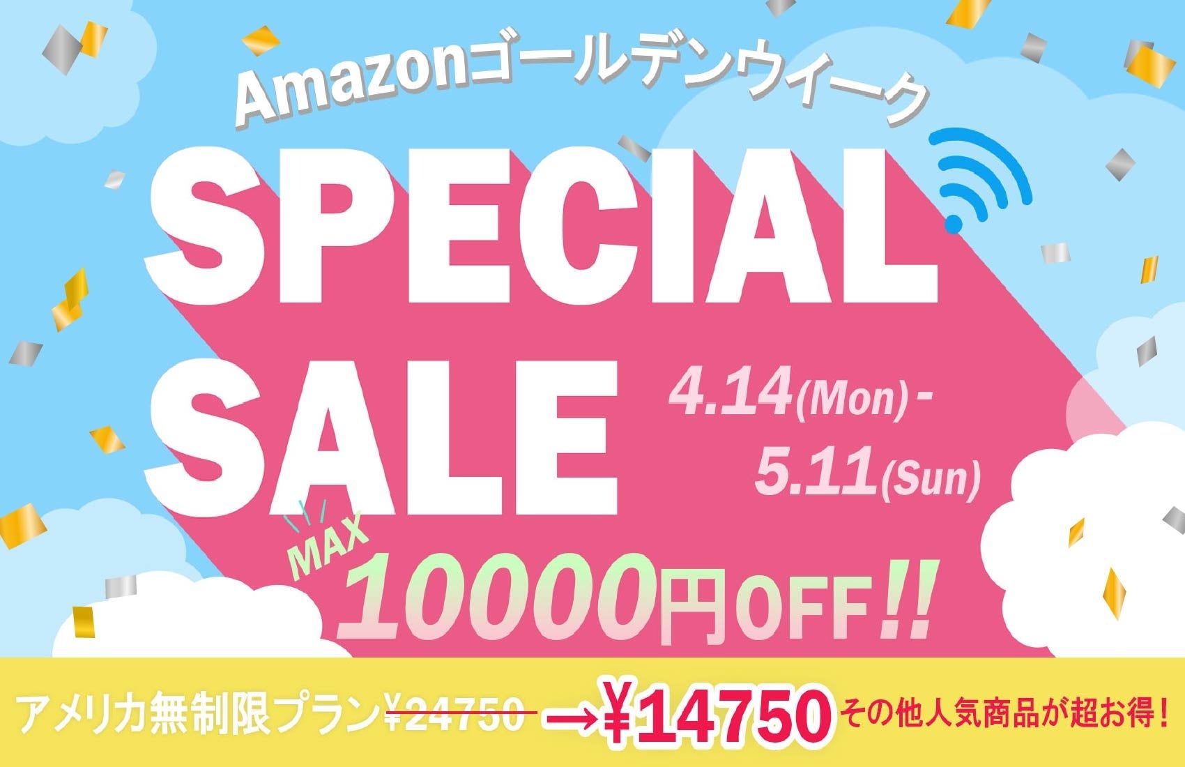 【最大10000円オフ!!】4/14~5/11まで Amazonゴールデンウイークスペシャルセール開催! Skylink Global人気のギガ付きポケットWi-Fiが特別価格に!